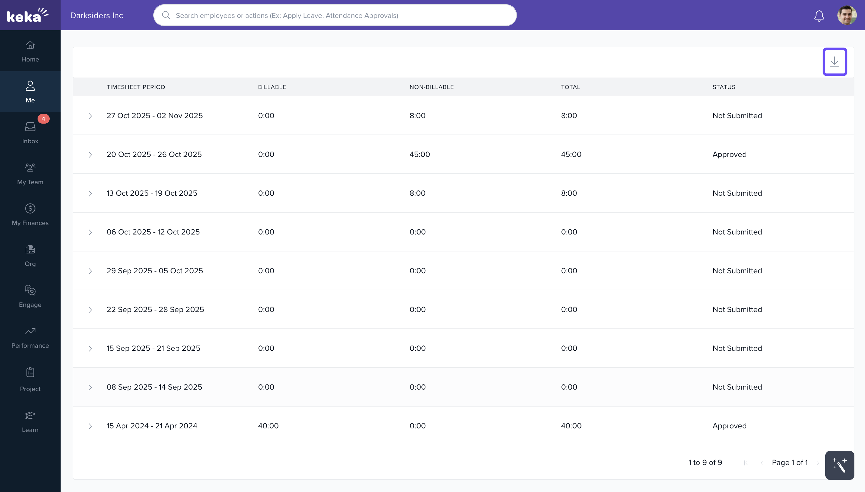 This gives you a clear view of the current approval status for each of your timesheets.
