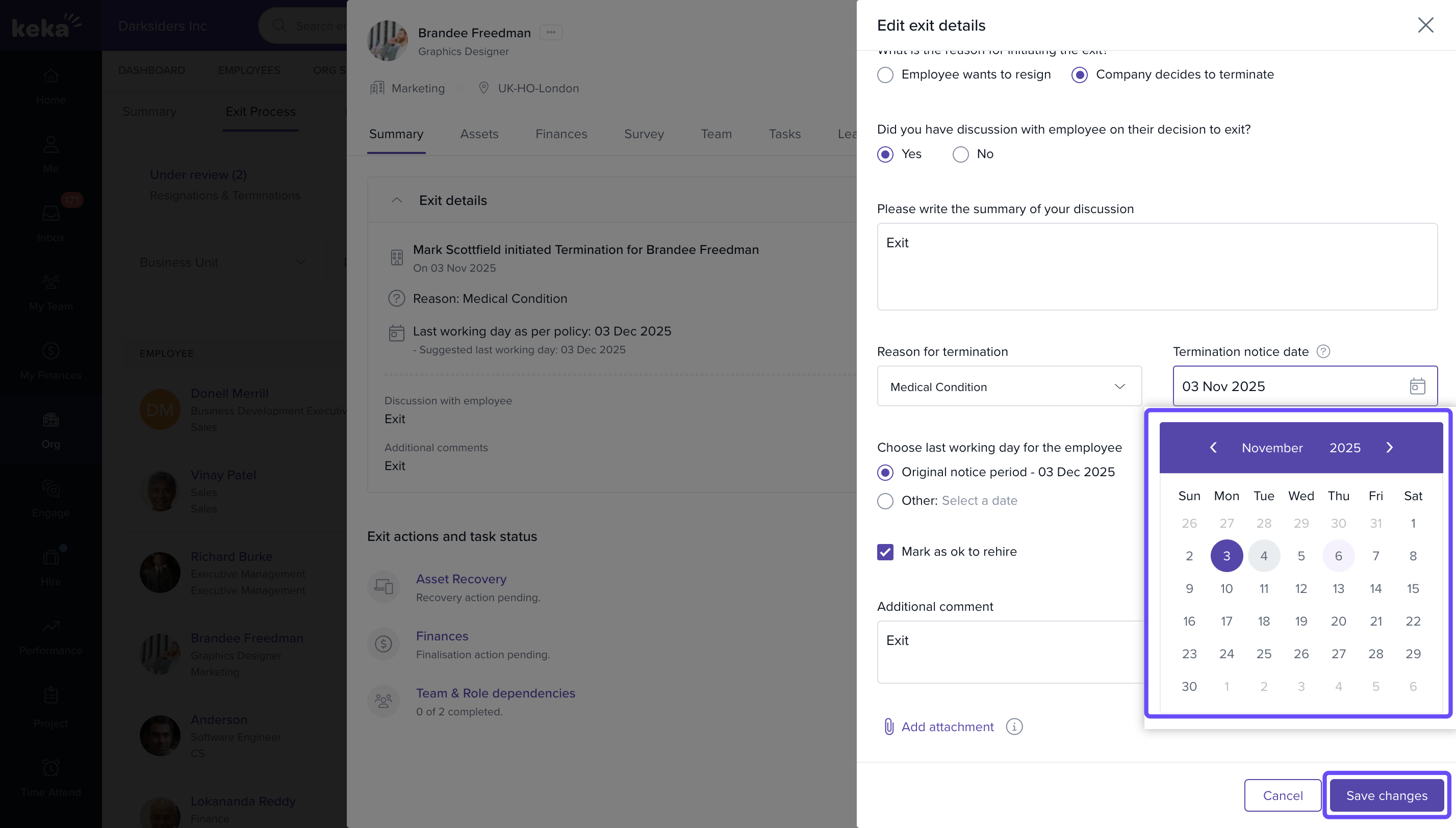 - Select the new exit date and then click on the Save Changes button to update it.