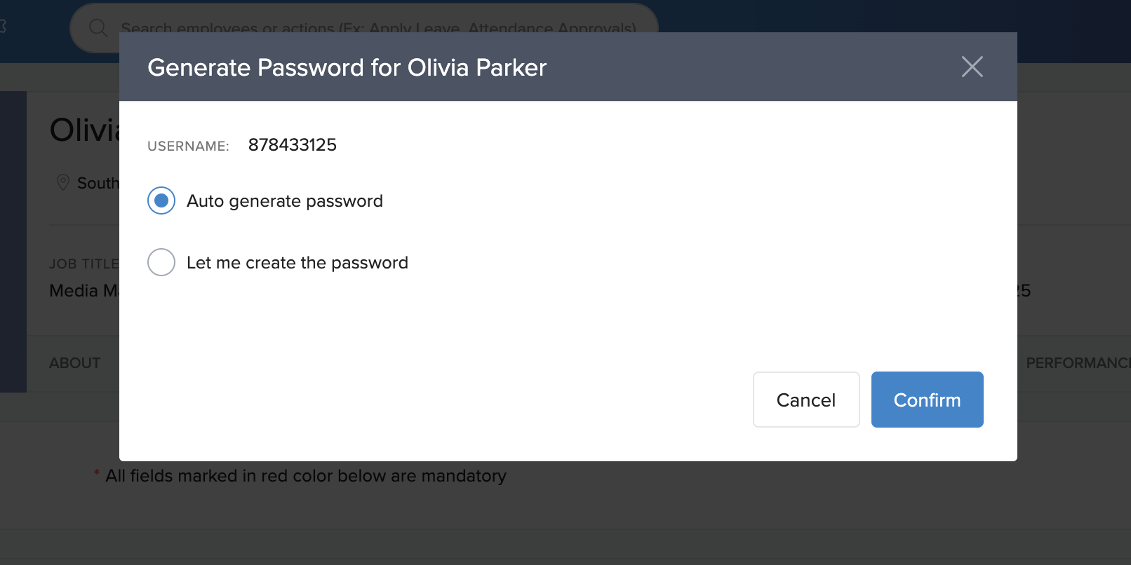 If an employee does not have a work email, admins can generate a password for them: