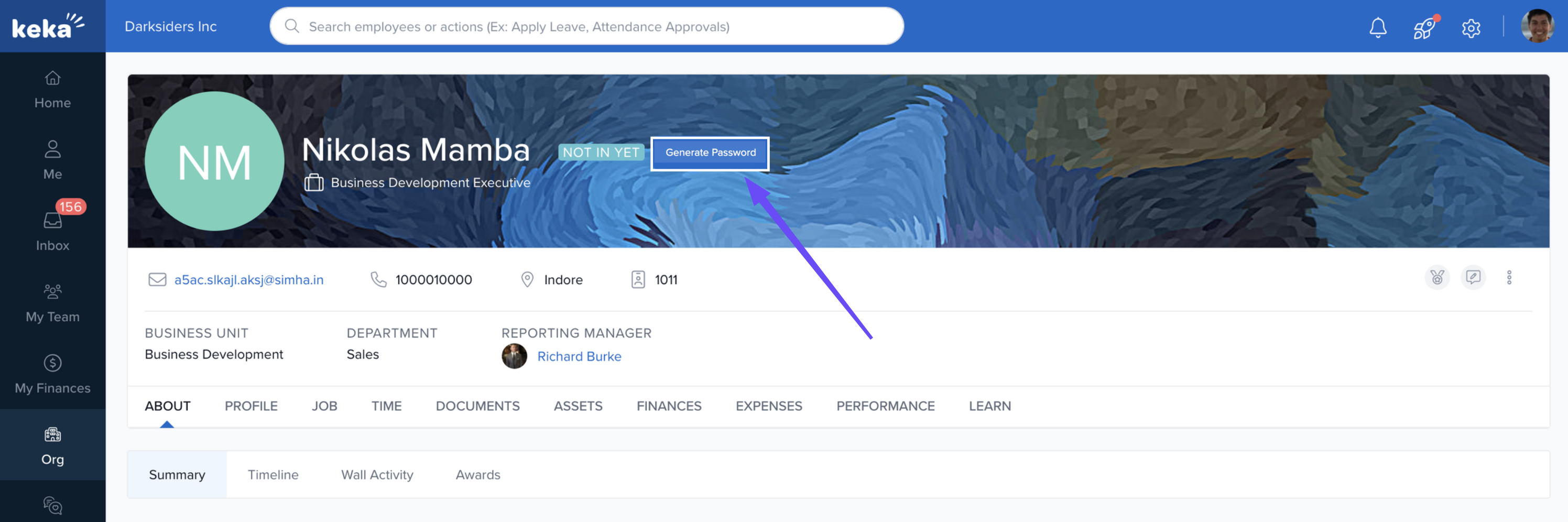 Keka allows admins to invite employees to the portal via email, enabling them to set up a password and access the system. Invitations can be sent both individually and in bulk. Additionally, if an employee doesn’t have a work email, admins can generate a password manually for login.
