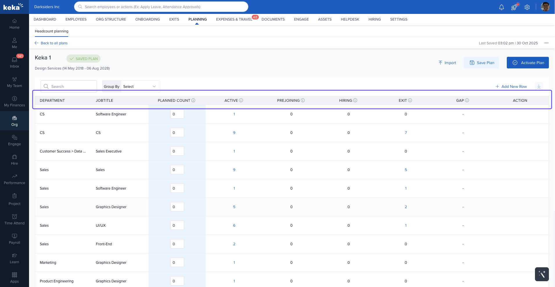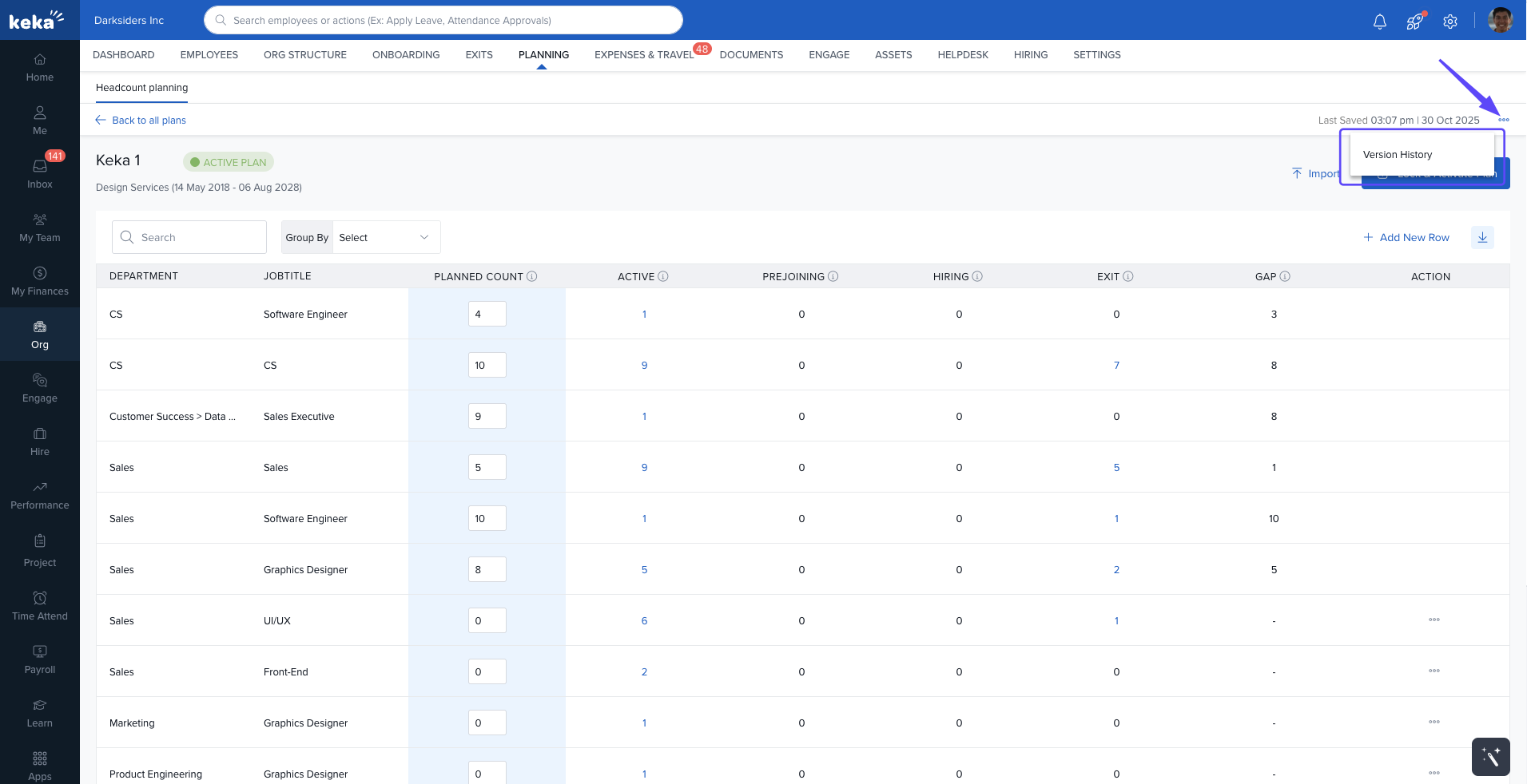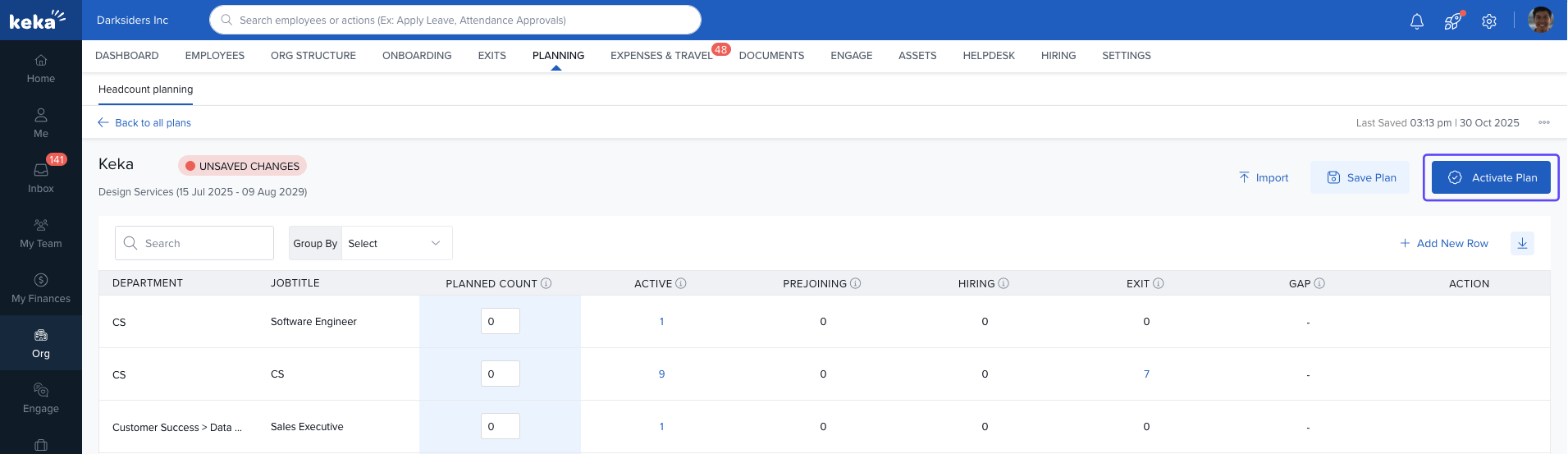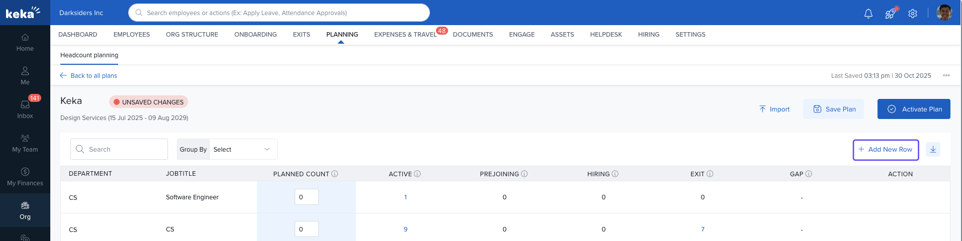 By following these steps and understanding the features, Keka's Headcount Planning tool allows you to efficiently manage and optimize your workforce, ensuring your organization is always prepared to meet its staffing needs.