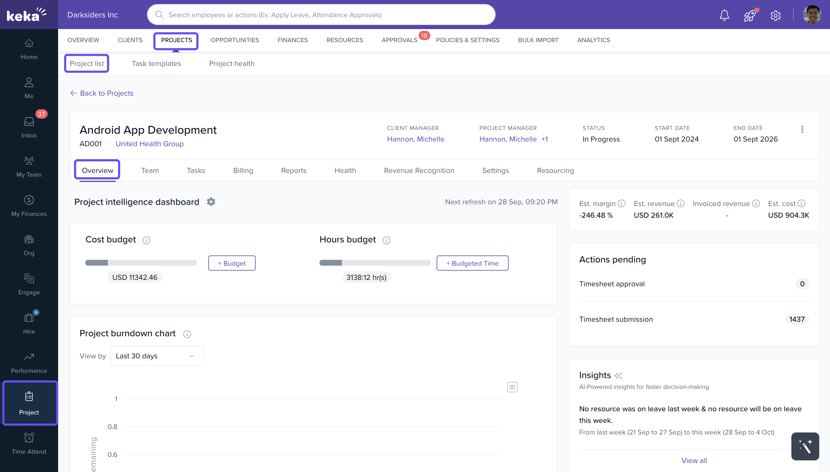- How to access and use Insights in Keka PSA