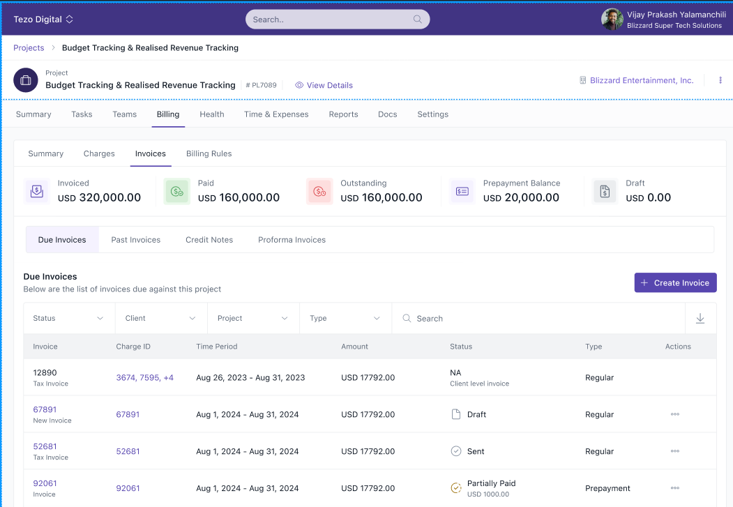 Generate a single invoice for a client across multiple projects. No more handling separate invoices per project- making consolidation faster and easier.