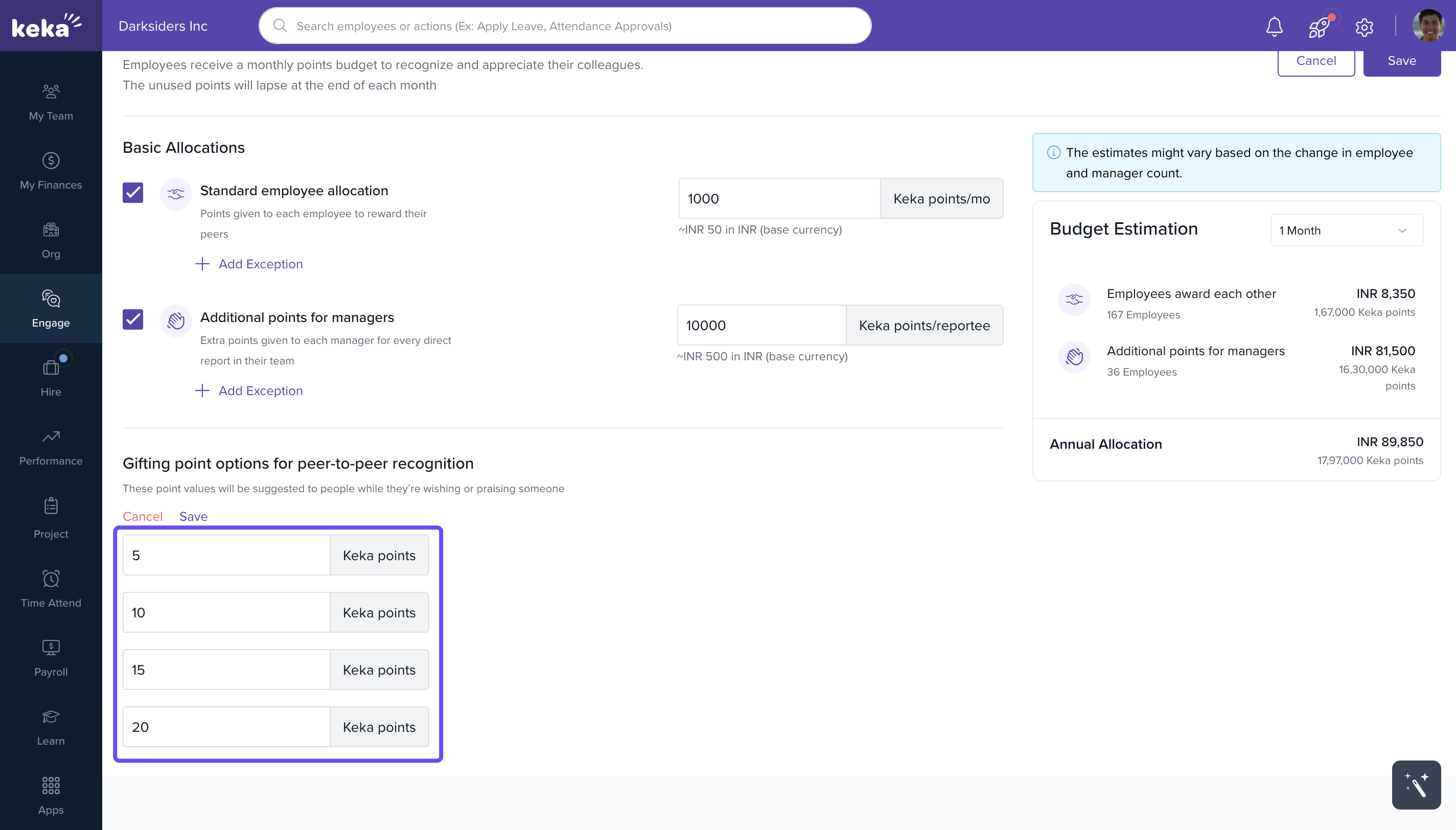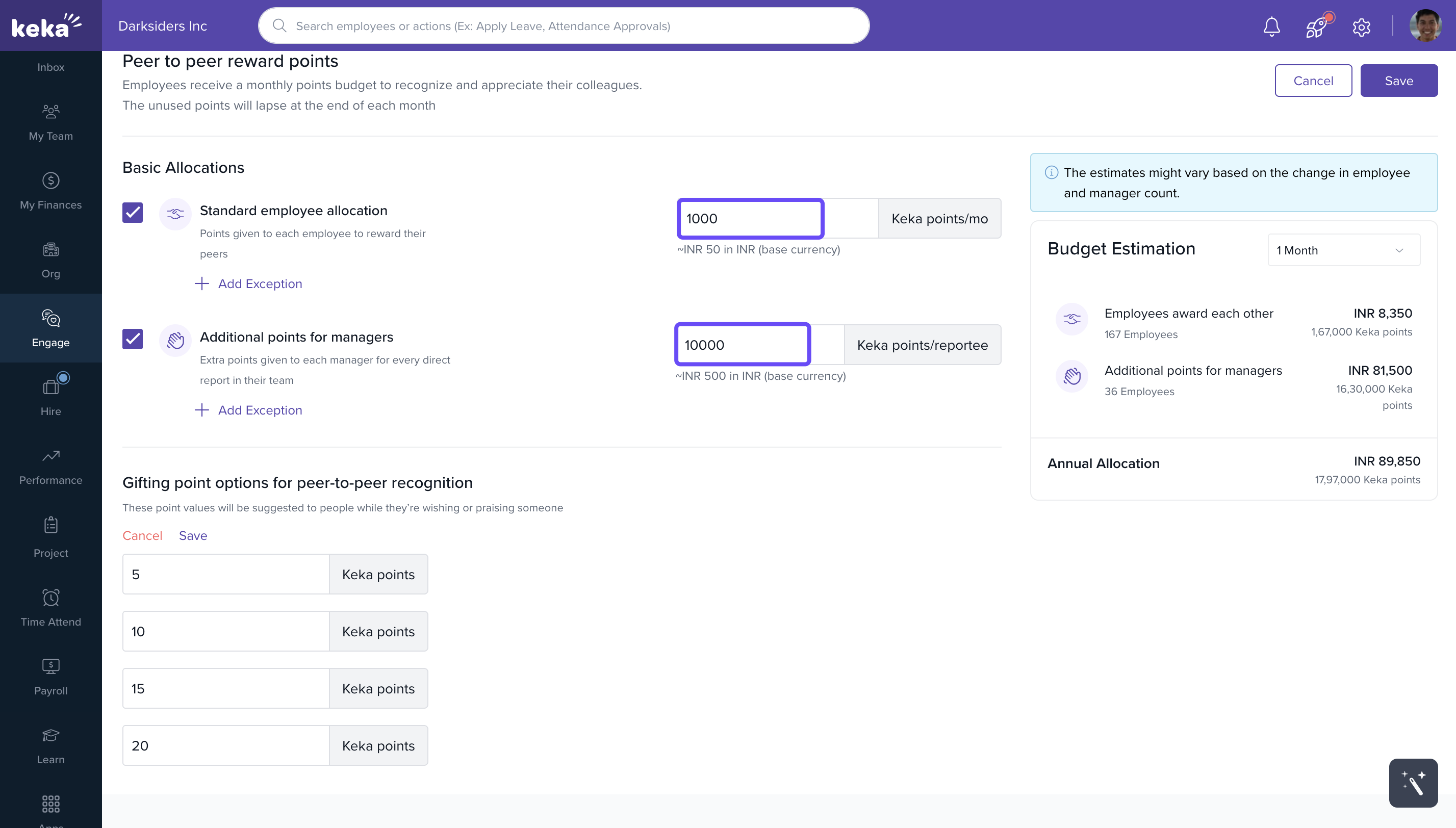 Keka’s Peer-to-Peer Rewards program lets employees recognise each other’s efforts through a point-based appreciation system. It encourages a culture of gratitude and collaboration—right from within your workspace.