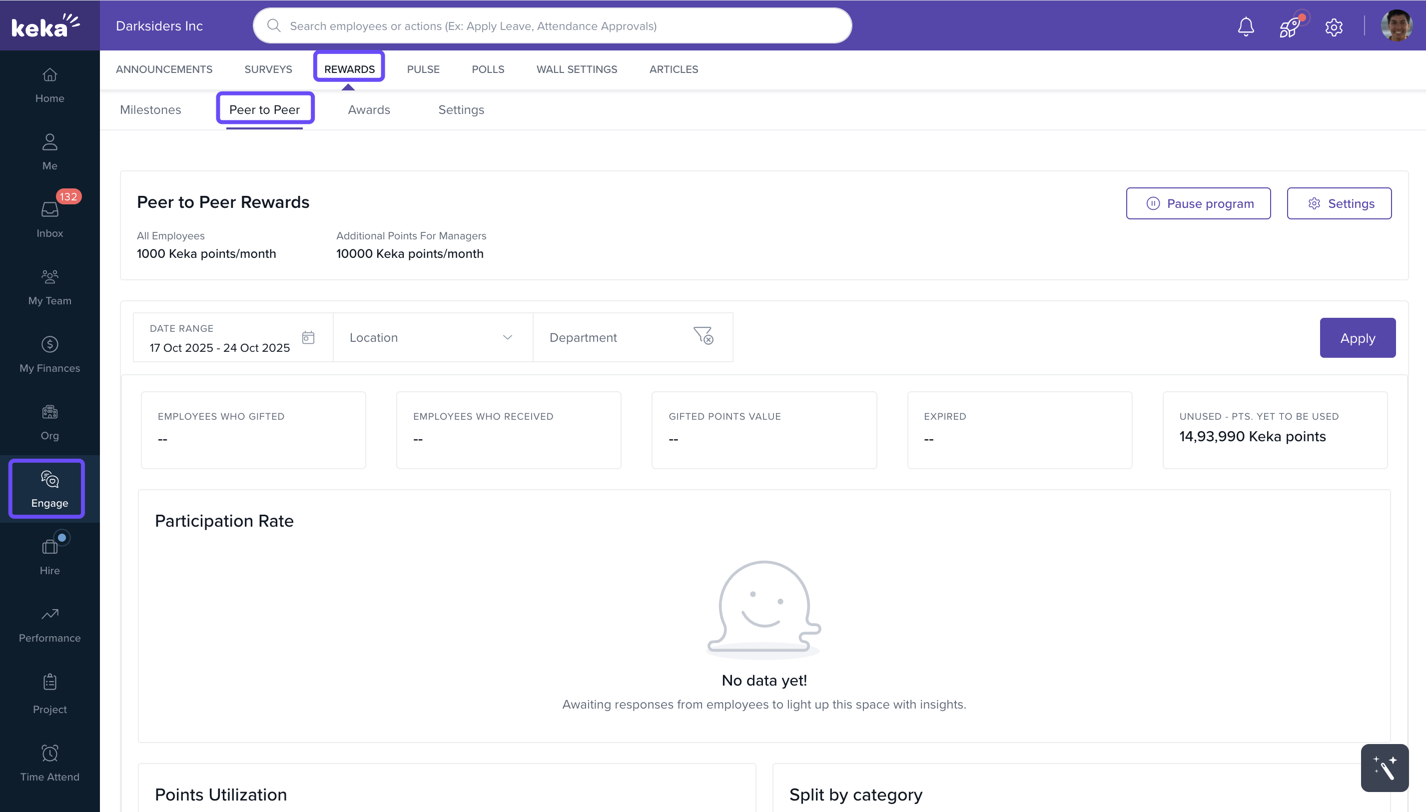 Go to Engage and click on Rewards. Under Rewards, click on Peer to Peer.