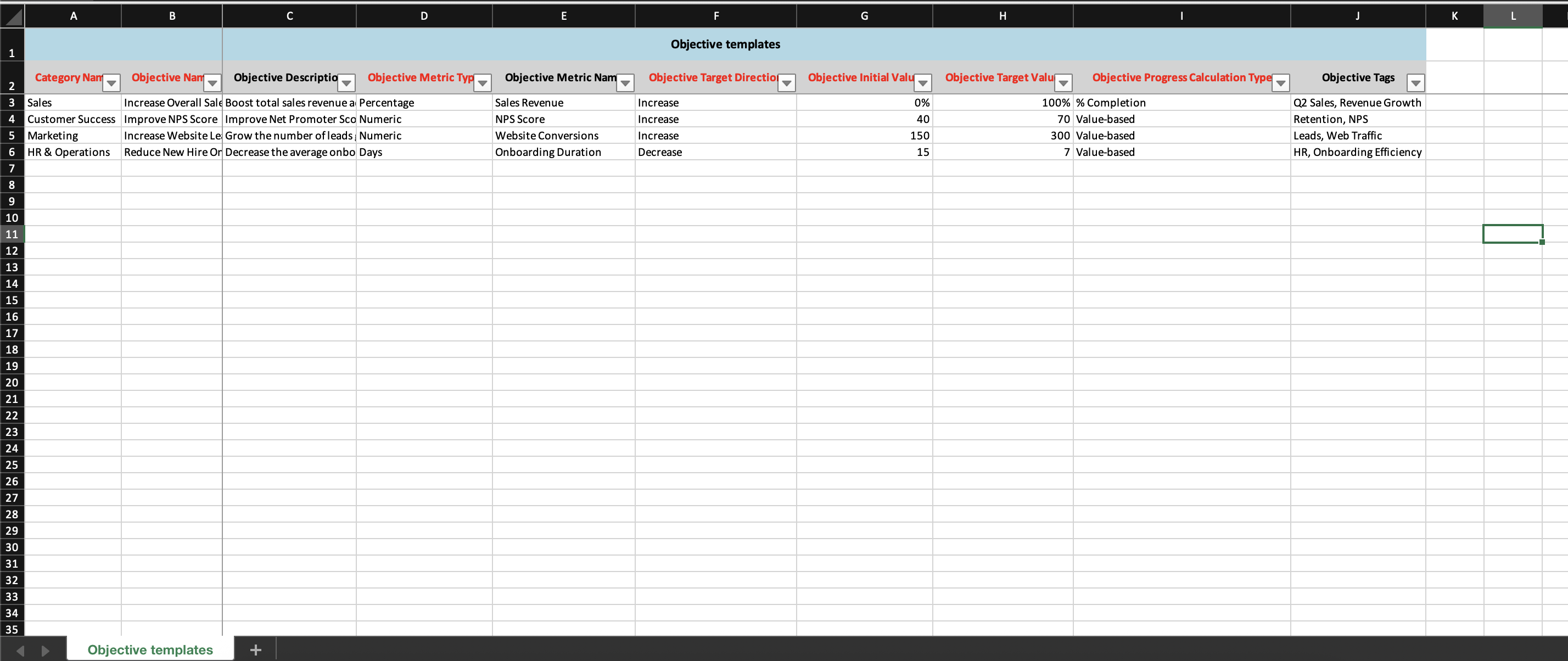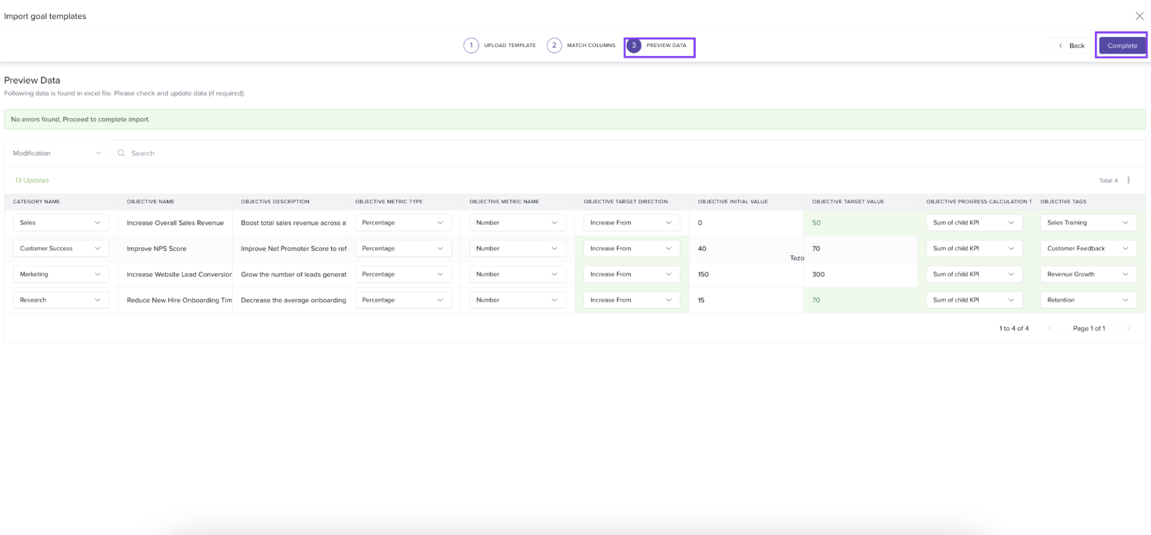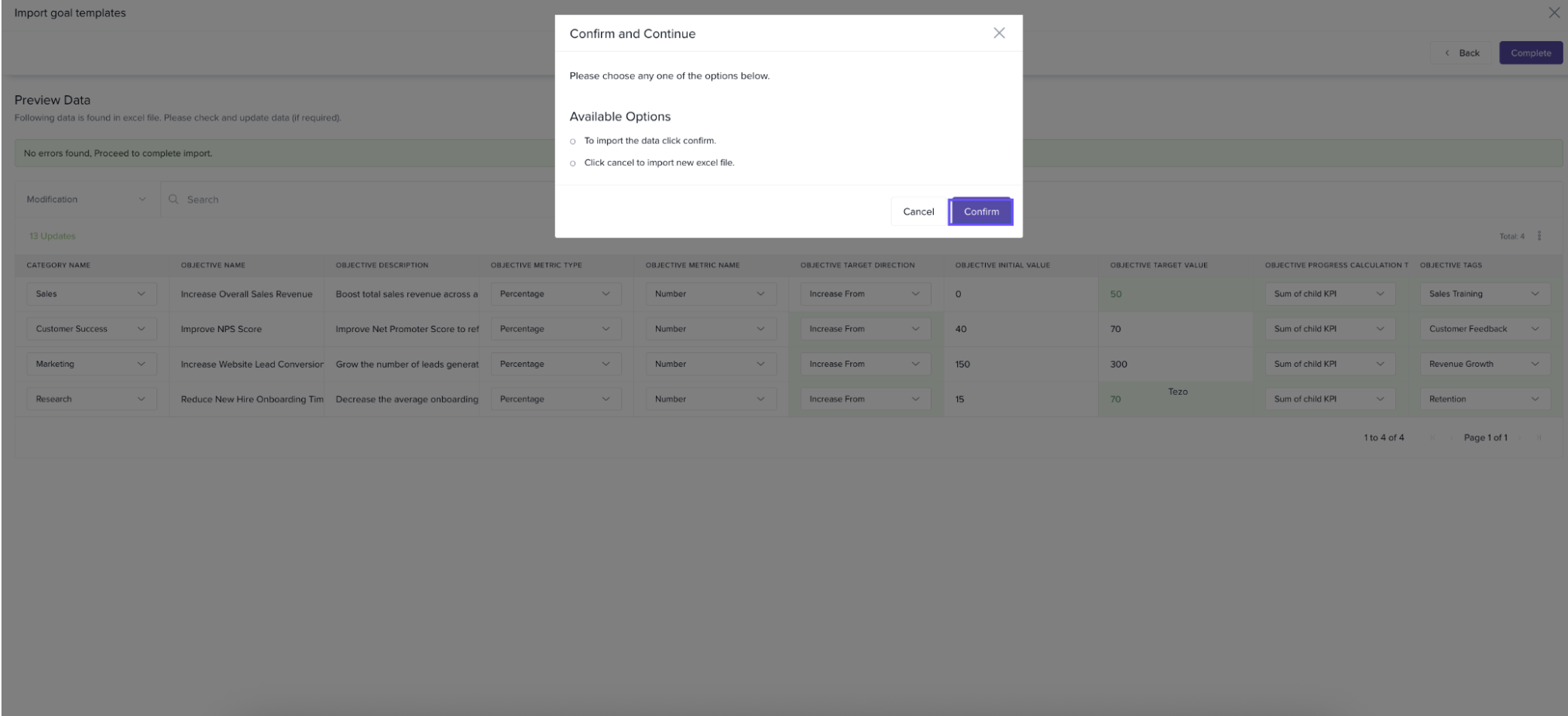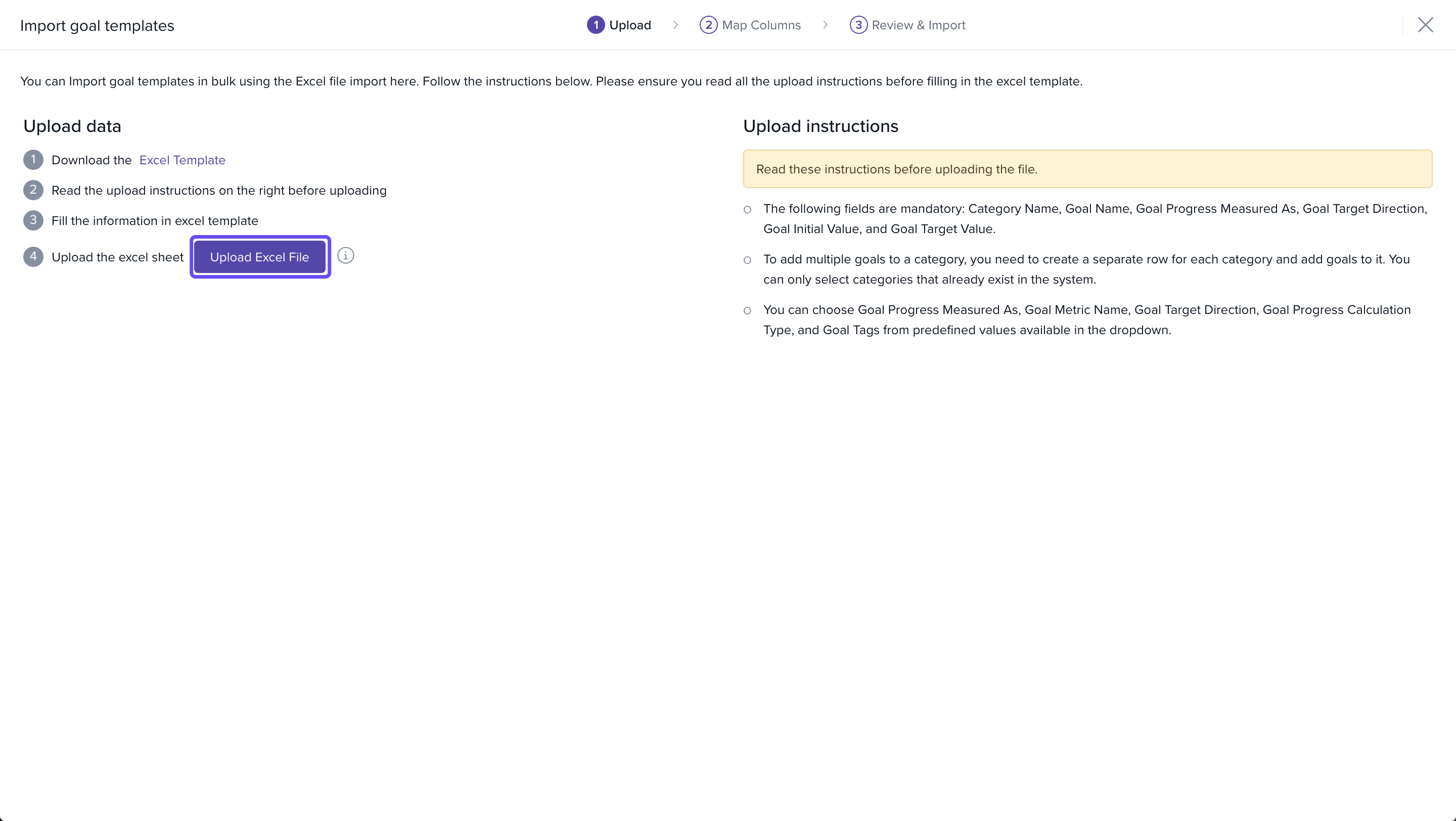 Thus, the bulk import feature for goal templates with categories significantly reduces manual effort and ensures consistency in goal-setting across teams. With just a few simple steps, admins can quickly set up structured, recurring goals—saving time and driving alignment across the organisation.