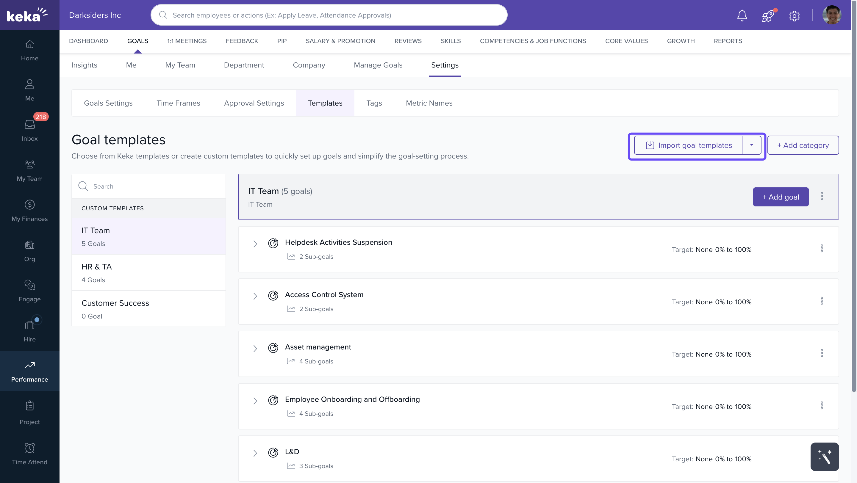 Performance Admins and Global Admins can now bulk import goal templates directly into Keka, making it easier than ever to set up structured and categorised goals for your teams. This enhancement is ideal for organisations managing large volumes of recurring goals across departments.