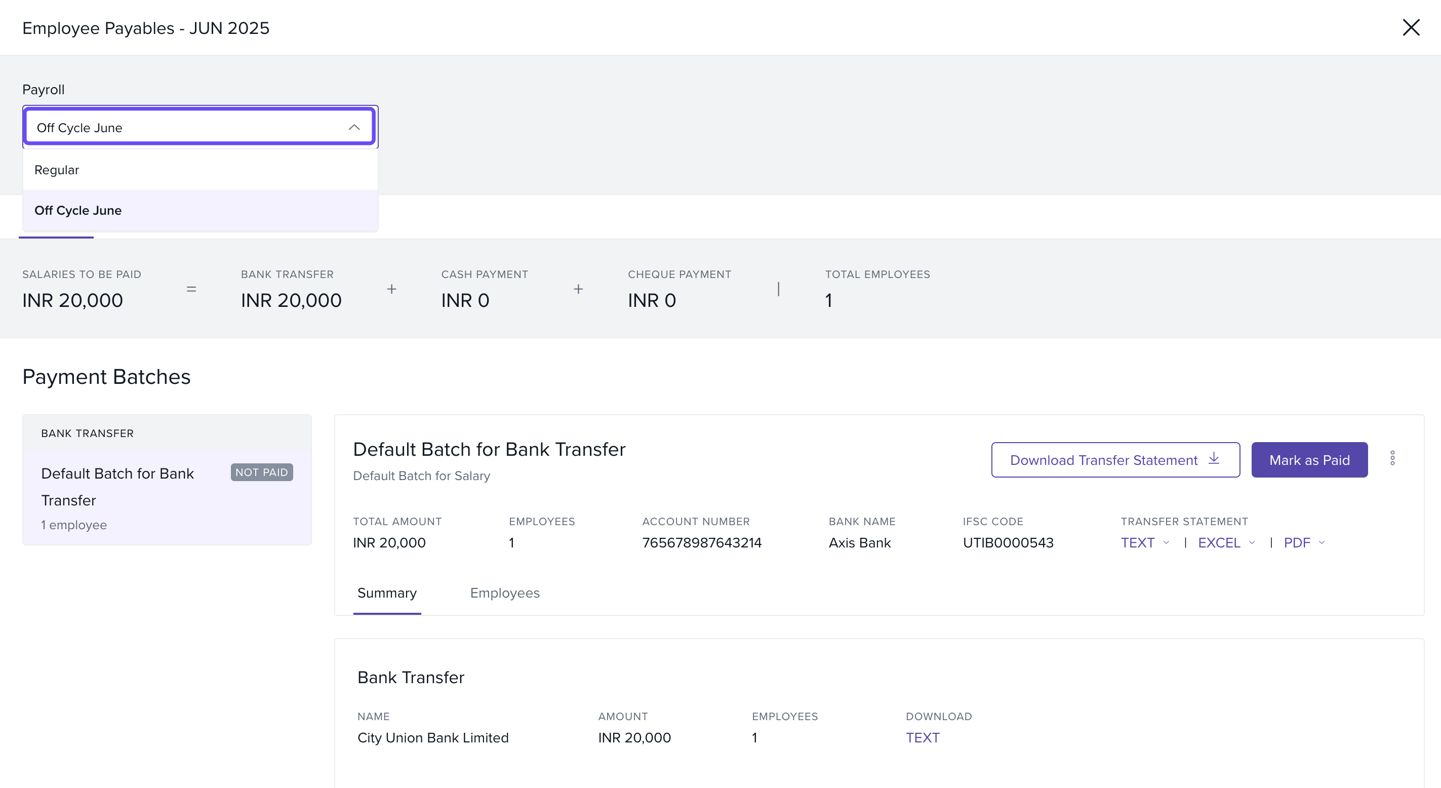 Off-cycle payrolls can be disbursed using salary payment automation, just like regular payroll.