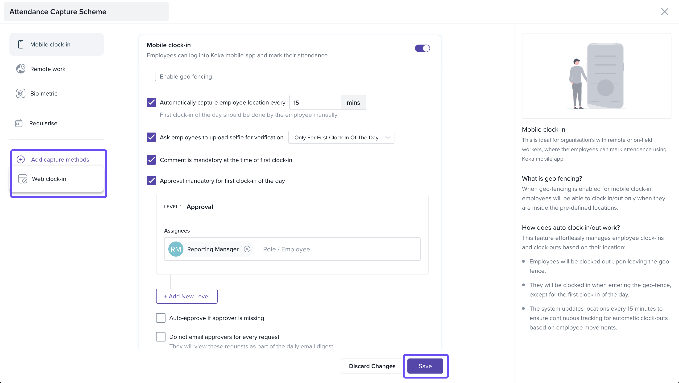 - Select the required capture method and click Save to update the scheme.