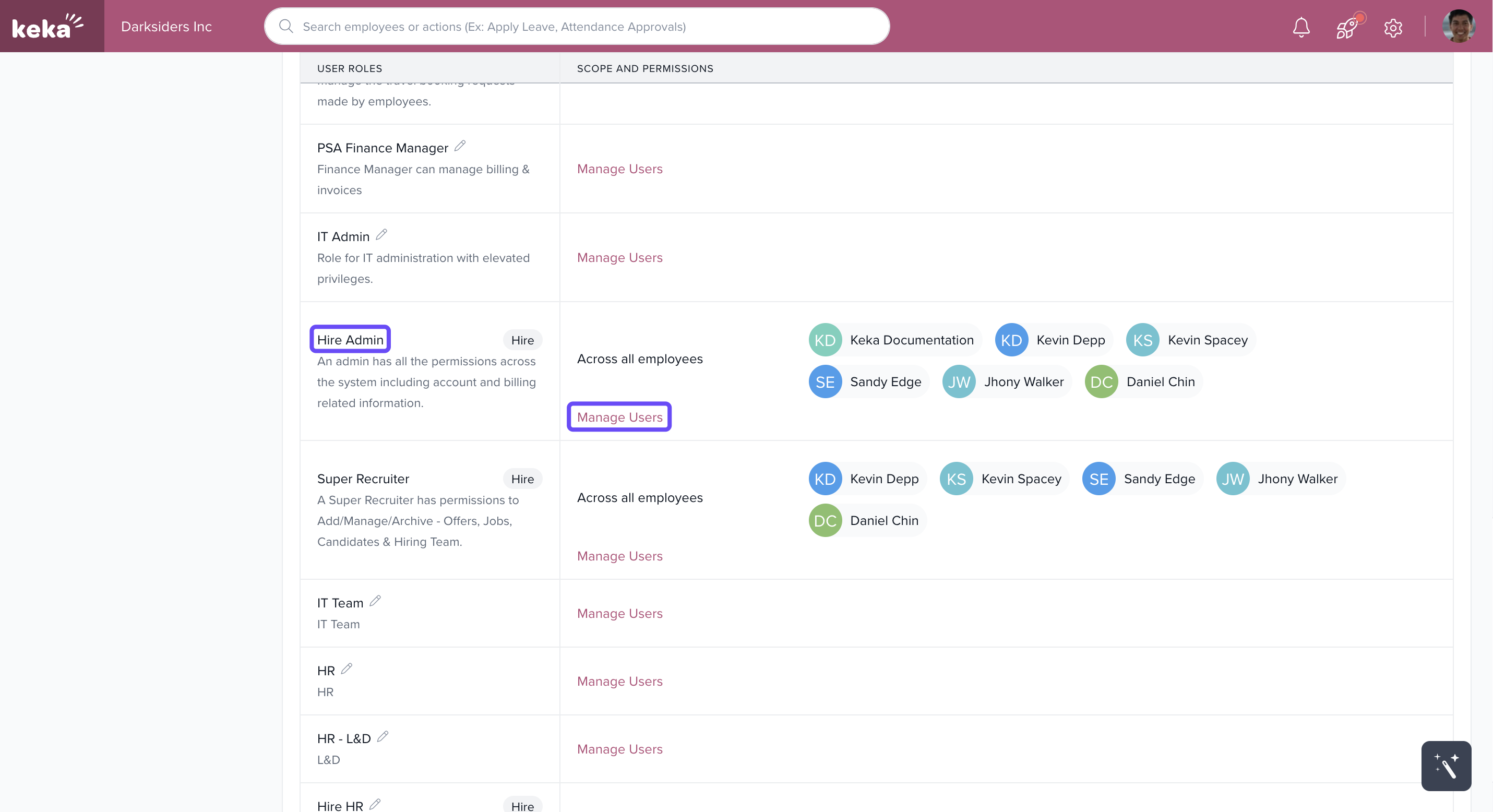 Keka’s Hire module is designed for managing end-to-end recruitment workflows. While it’s usually used by recruiters, some organizations may want to give Global Admins full access to recruitment operations. This article walks you through how to grant HIRE access to a global admin using Roles and Permissions.