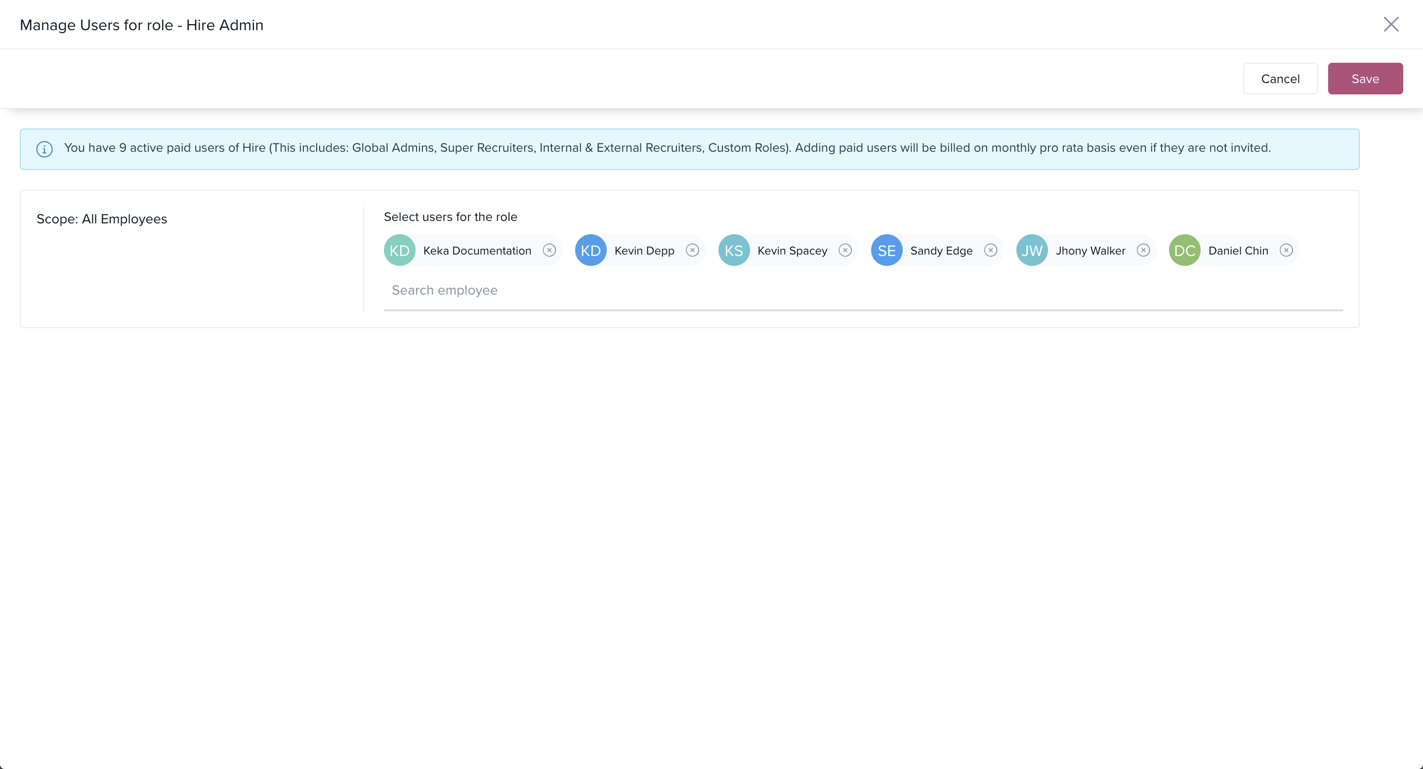 Once assigned, the global admin will gain full access to the Hire module. This includes the ability to manage recruitment workflows, configurations, and overall hiring settings—ensuring centralized control across modules.