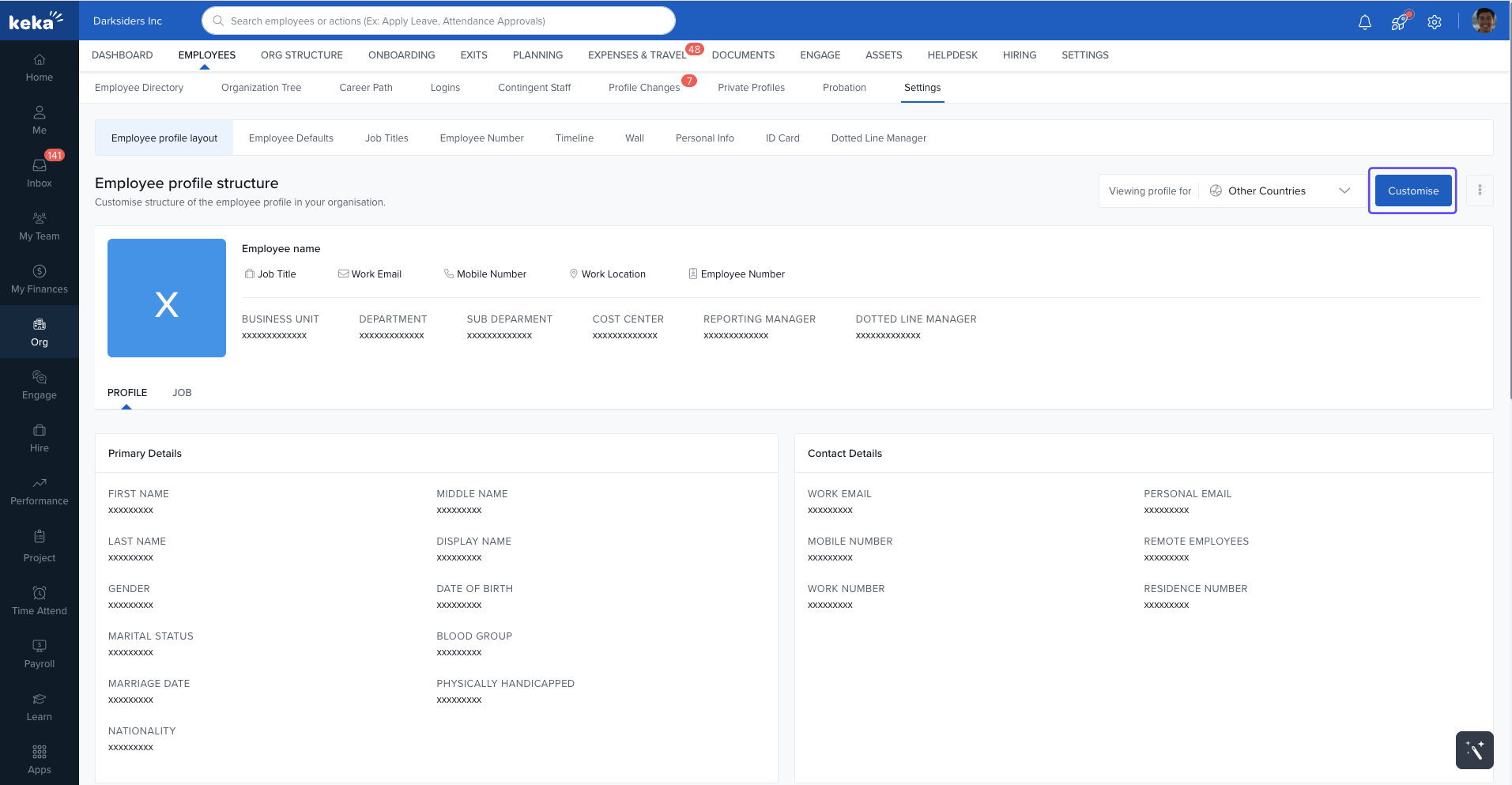 In the Employee Profile Structure section, click Customize.