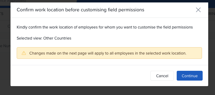 In the confirmation popup, verify the selected work location and click Continue.