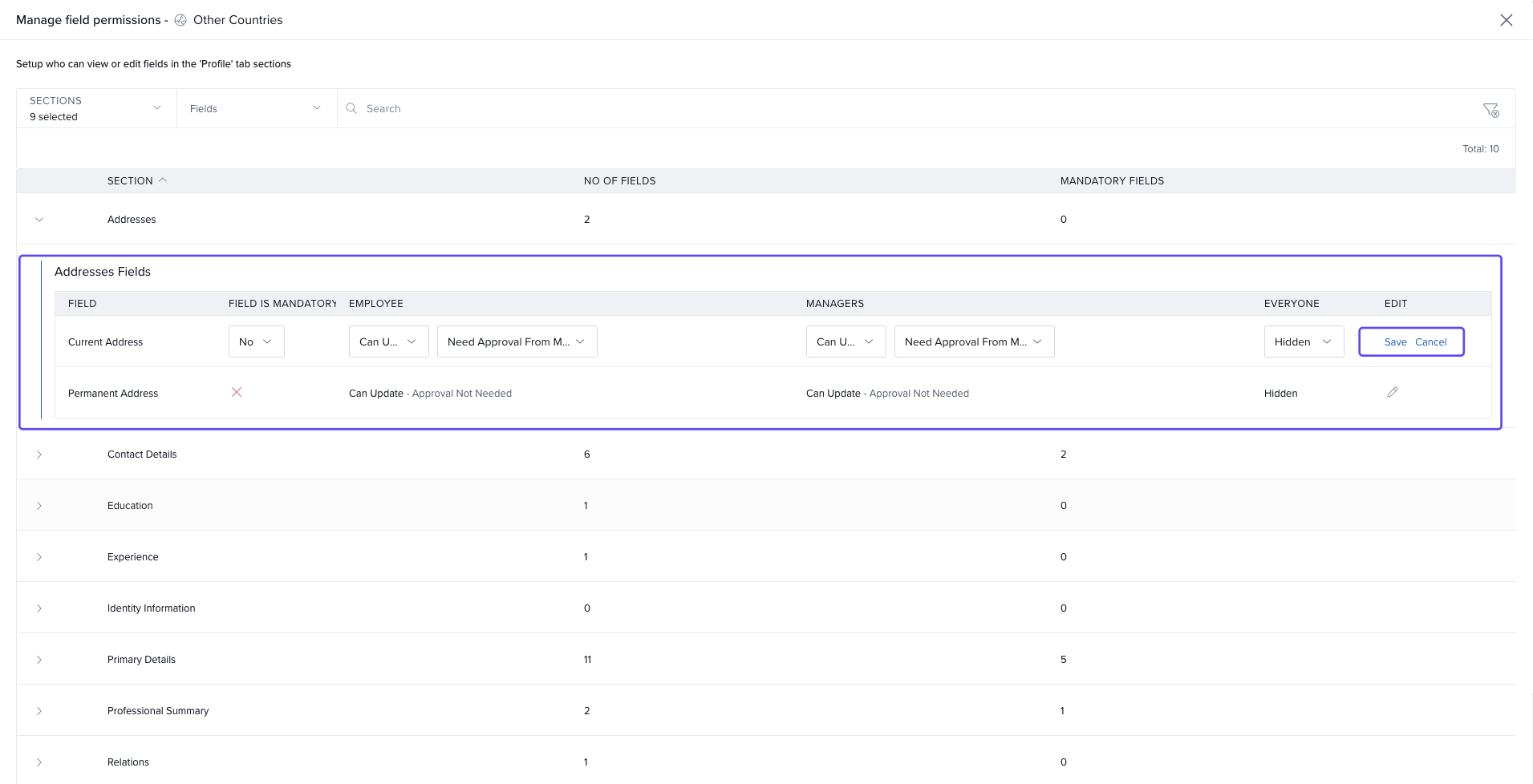 Admins can control who can view or edit specific profile fields.