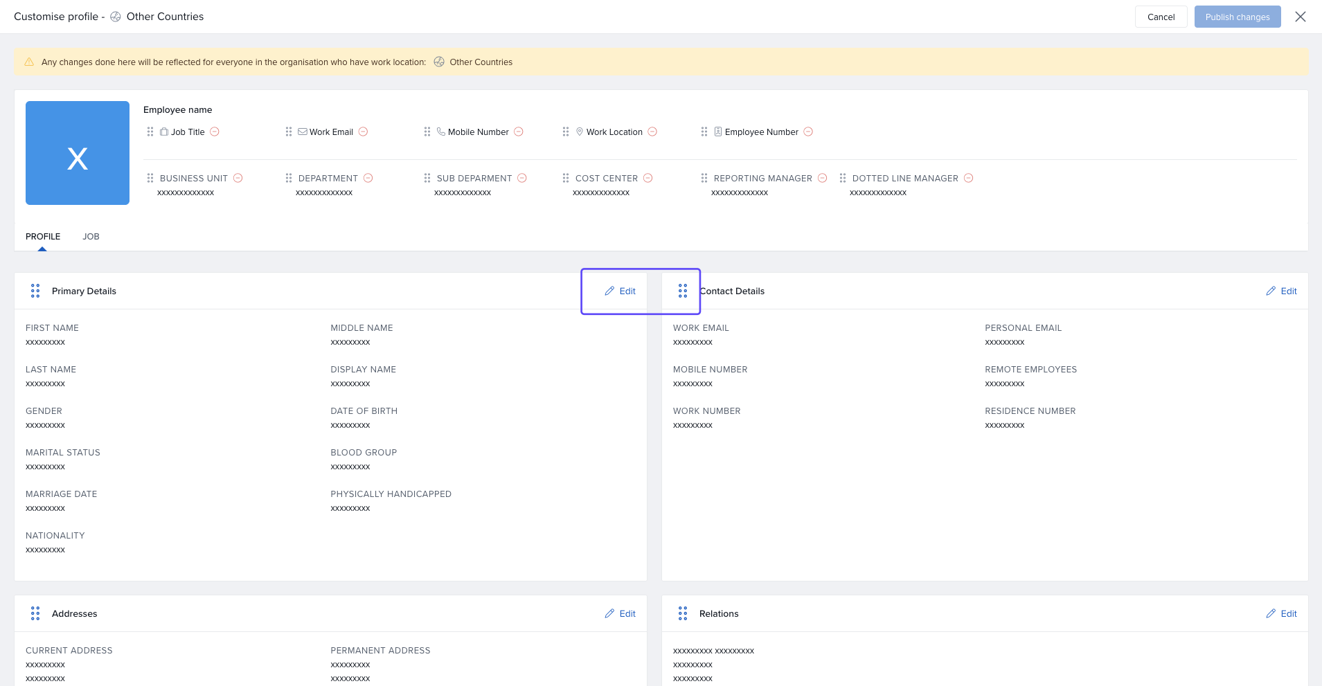 You can rearrange or modify the layout of employee profile cards.