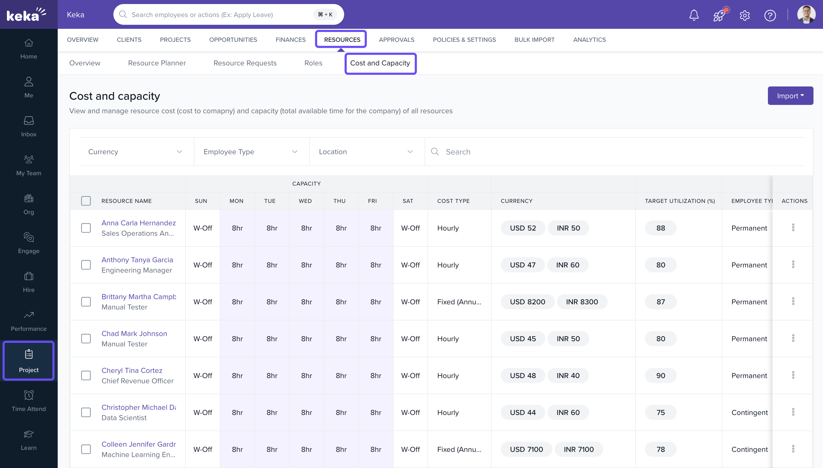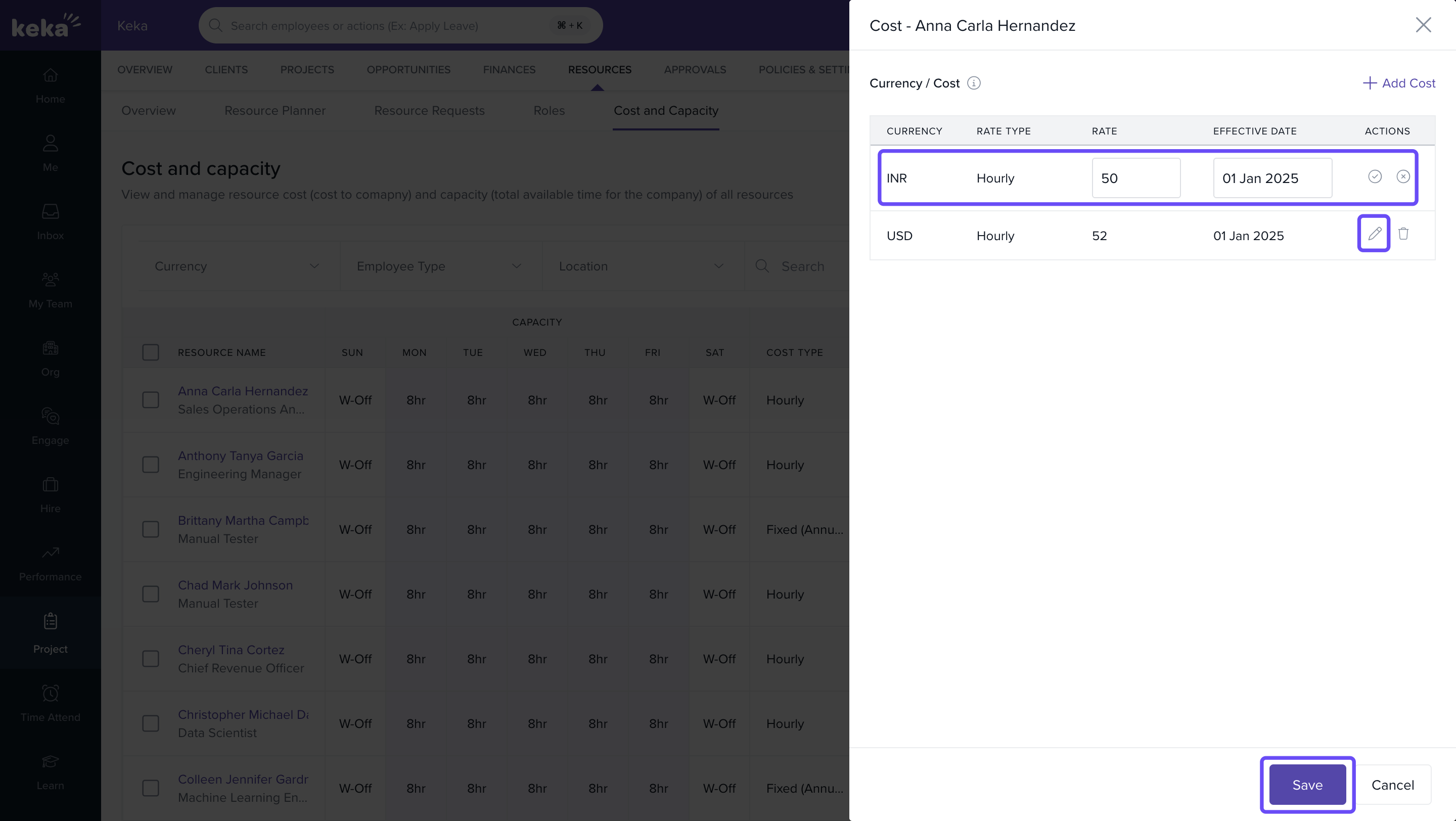 - Go to Projects → Resources → Cost and Capacity.