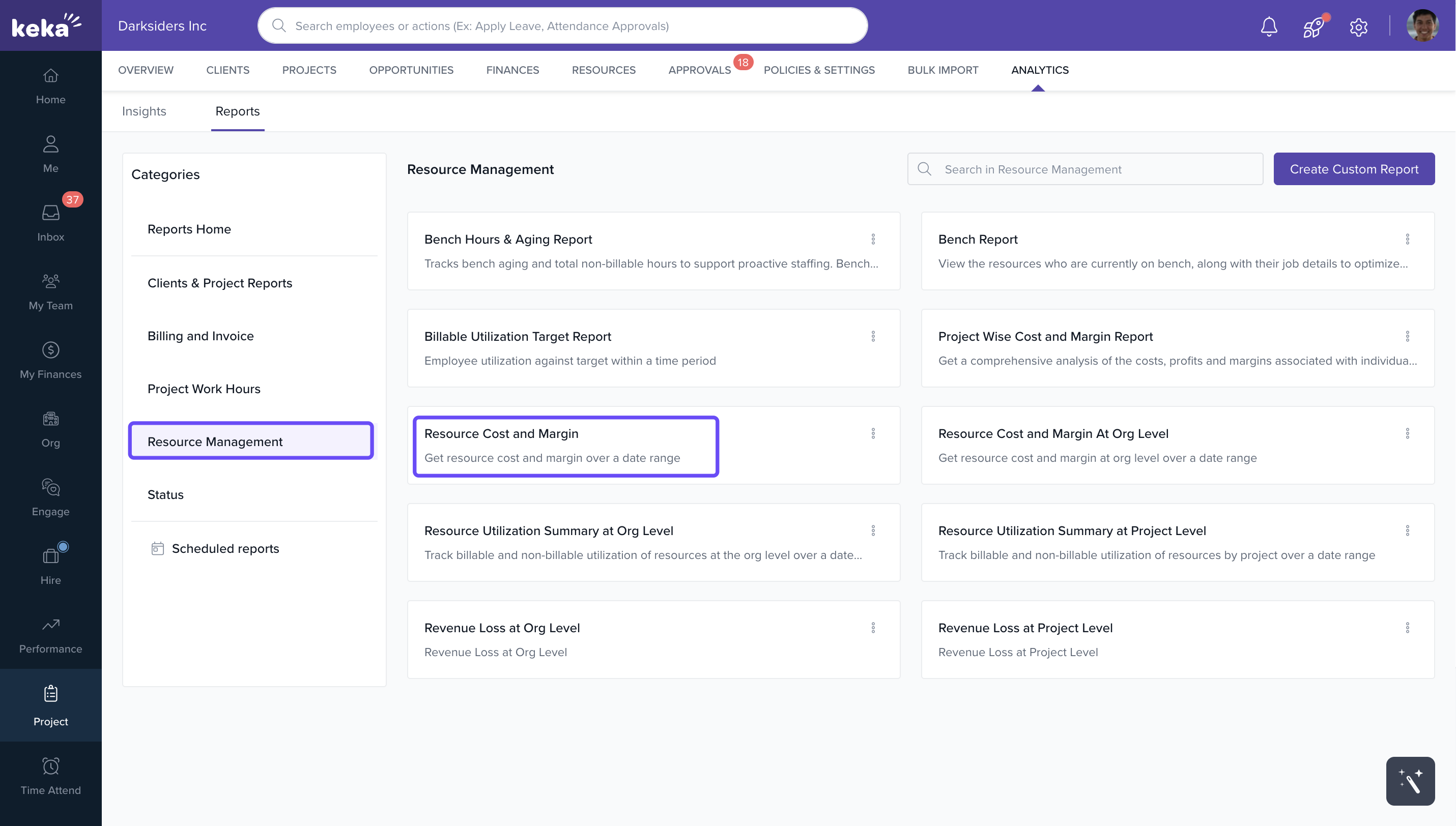 - Resource Cost and Margin (Project-Level): Provides project-wise cost, margin, and billing insights.