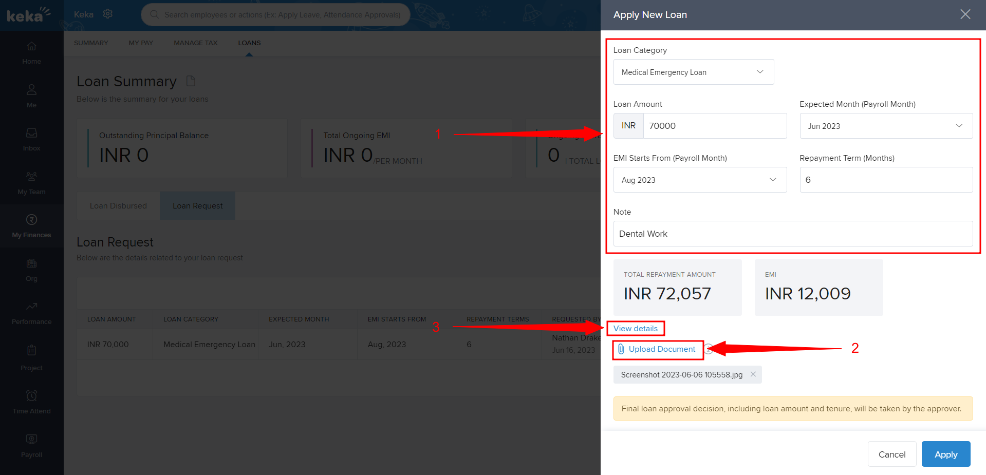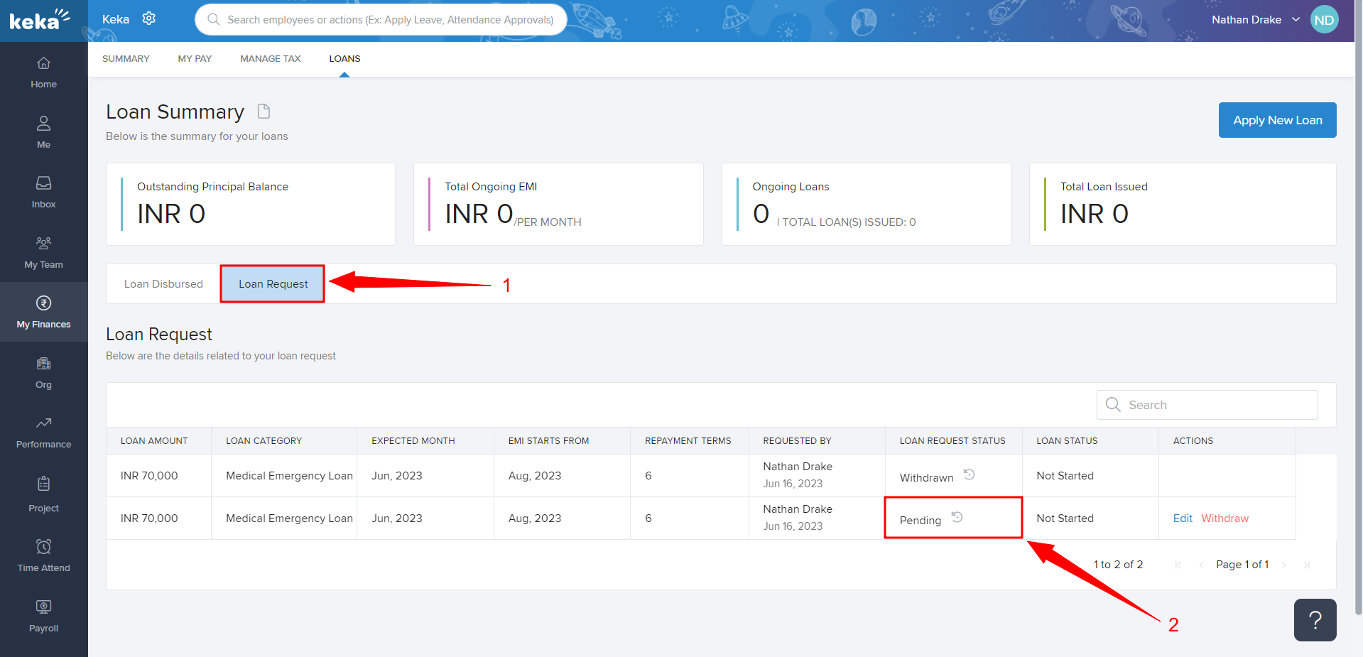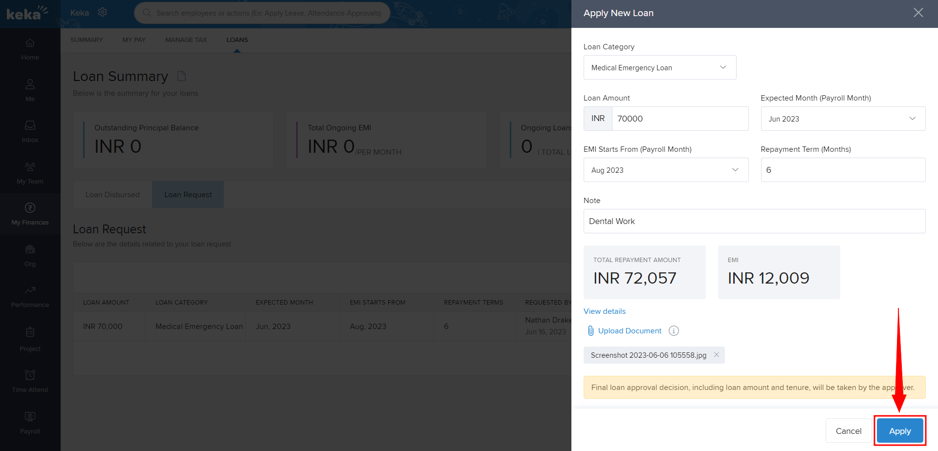 Now, let us look at the process for applying for a loan on the Keka portal �