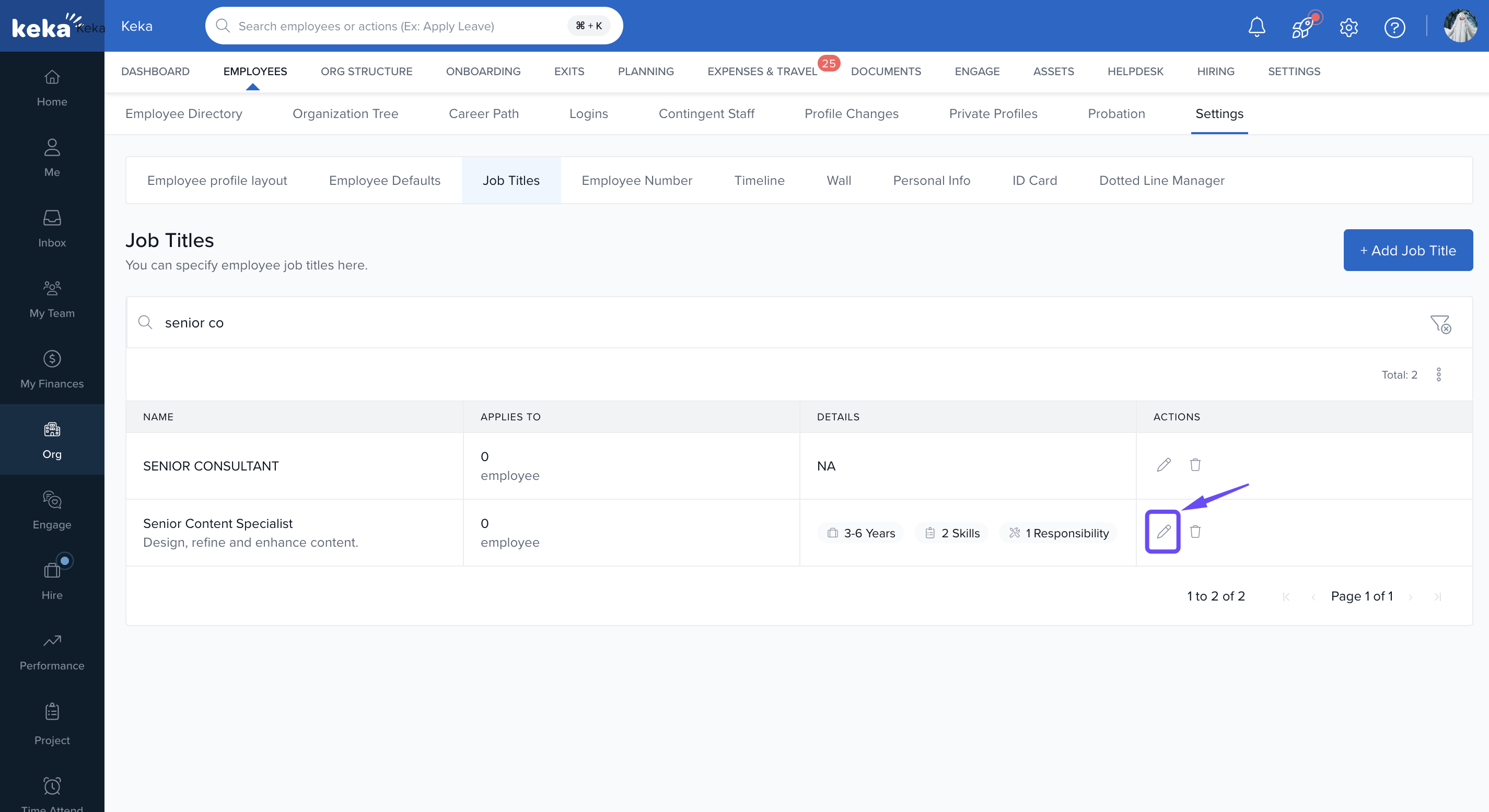 In the Job Titles section, click Add Job Titles.