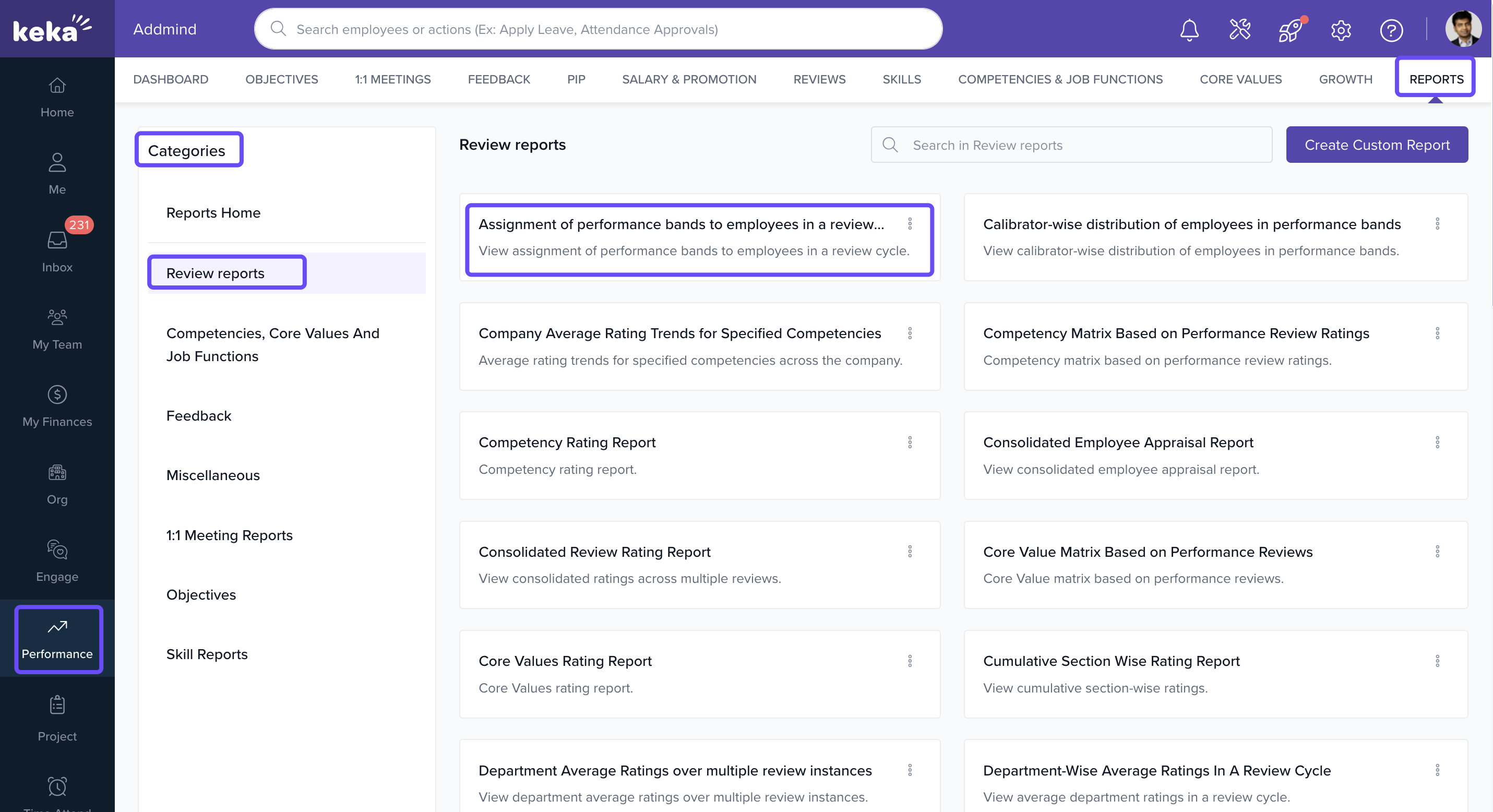 Reach out to your HR admin or Keka Support if you cannot access the Review Reports section.