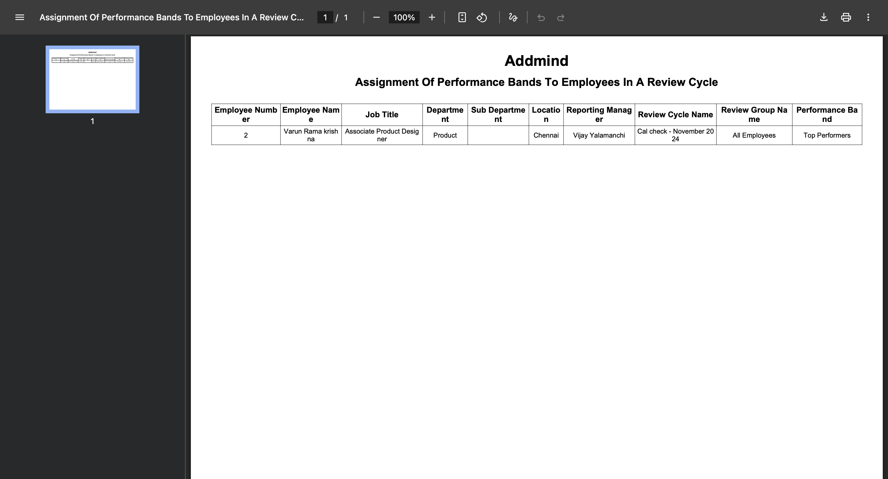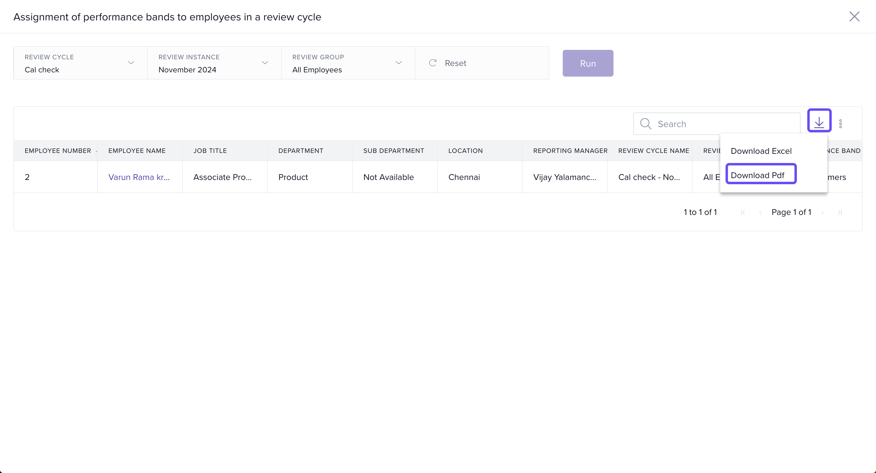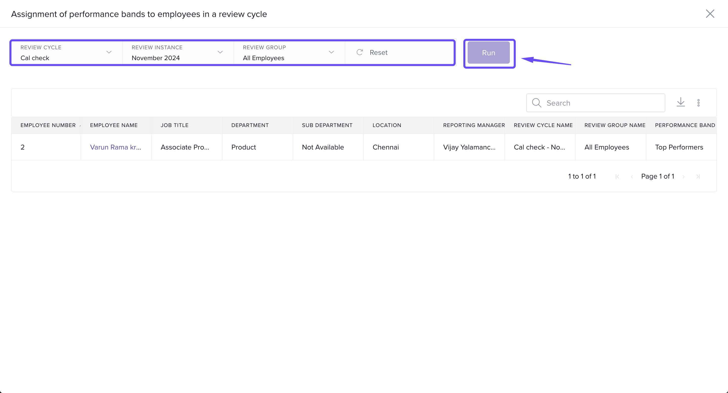 Access the Assignment of Performance Bands to Employees in a Review Cycle report