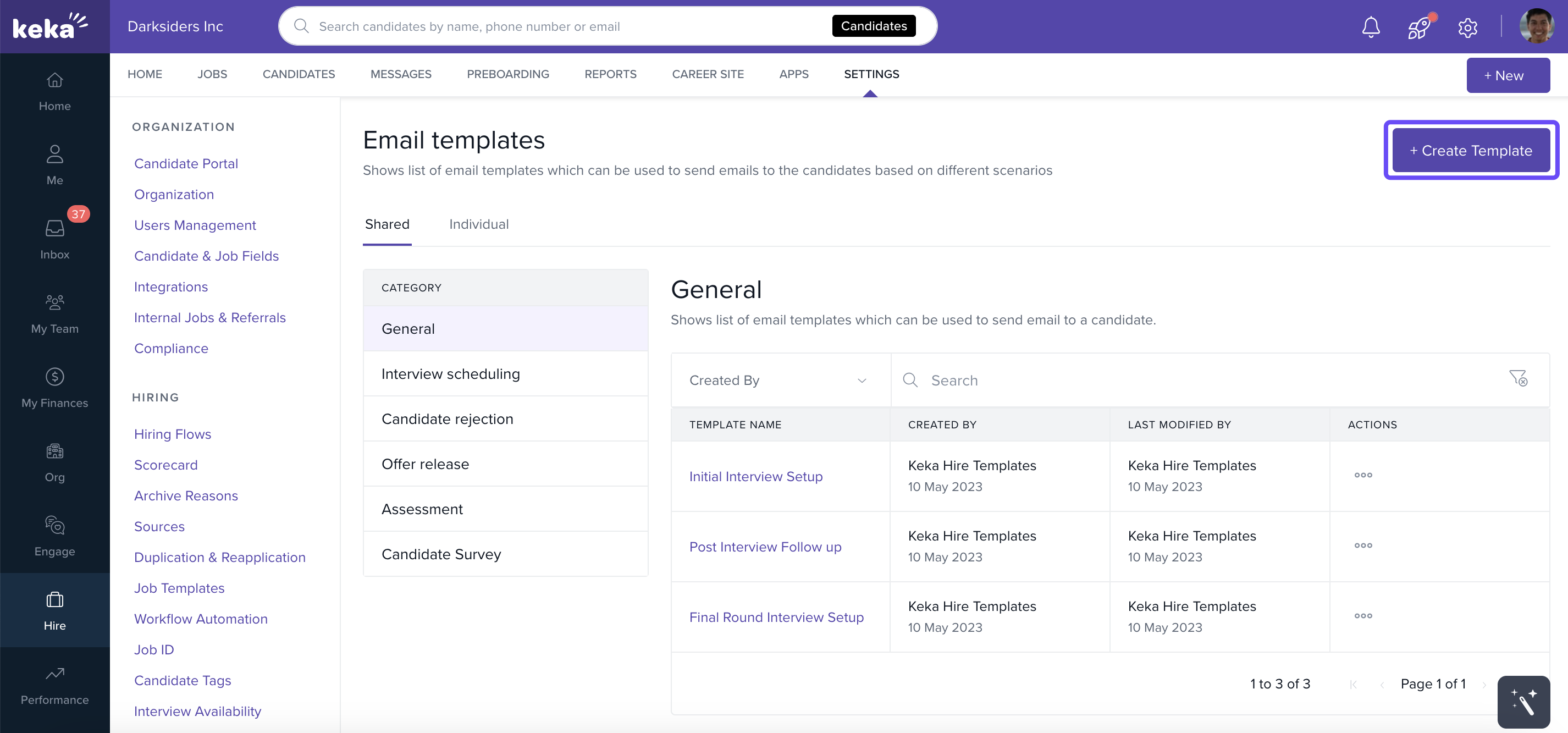 Clear and consistent communication with candidates is critical in recruitment. Keka Hire’s Messages section and Email Templates help recruiters manage conversations efficiently, maintain consistency, and save time.