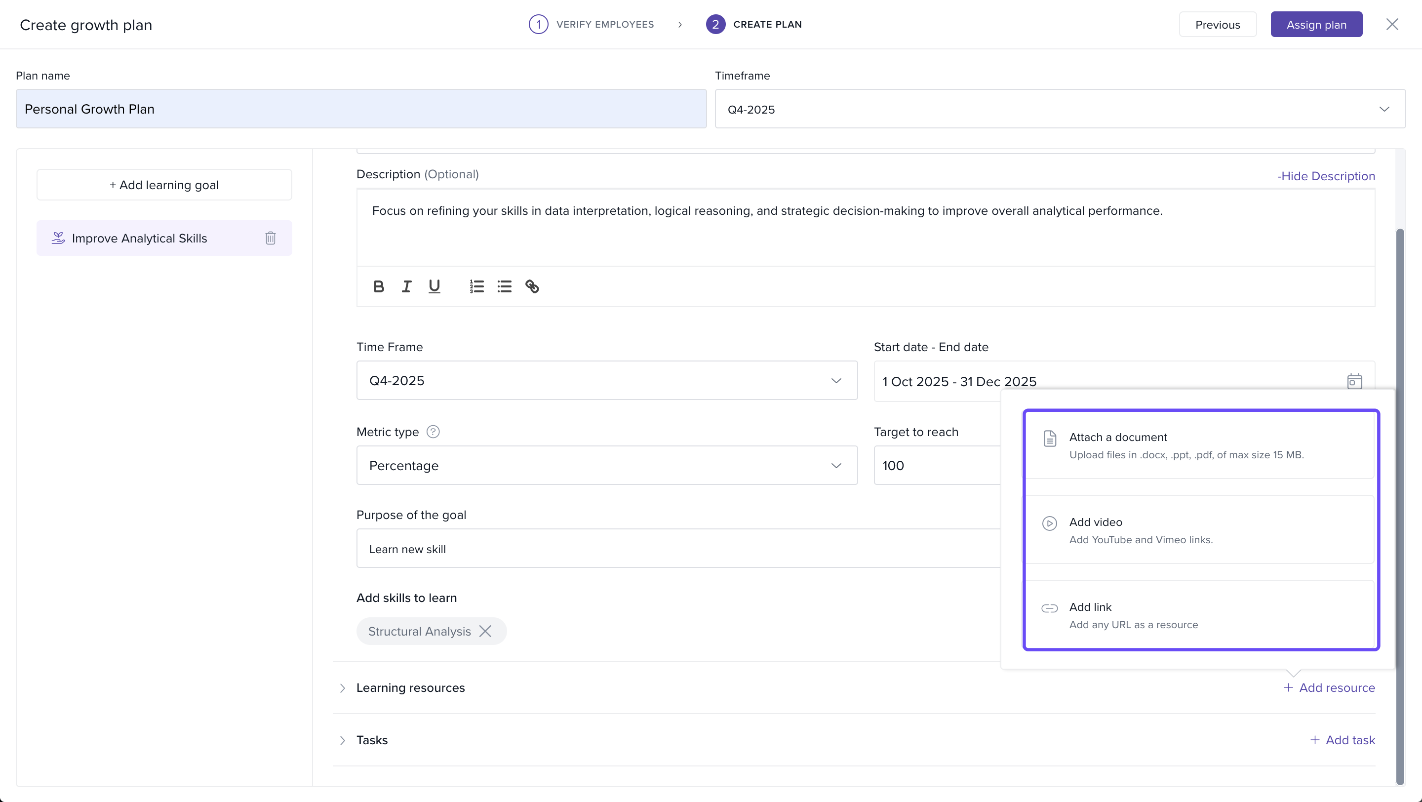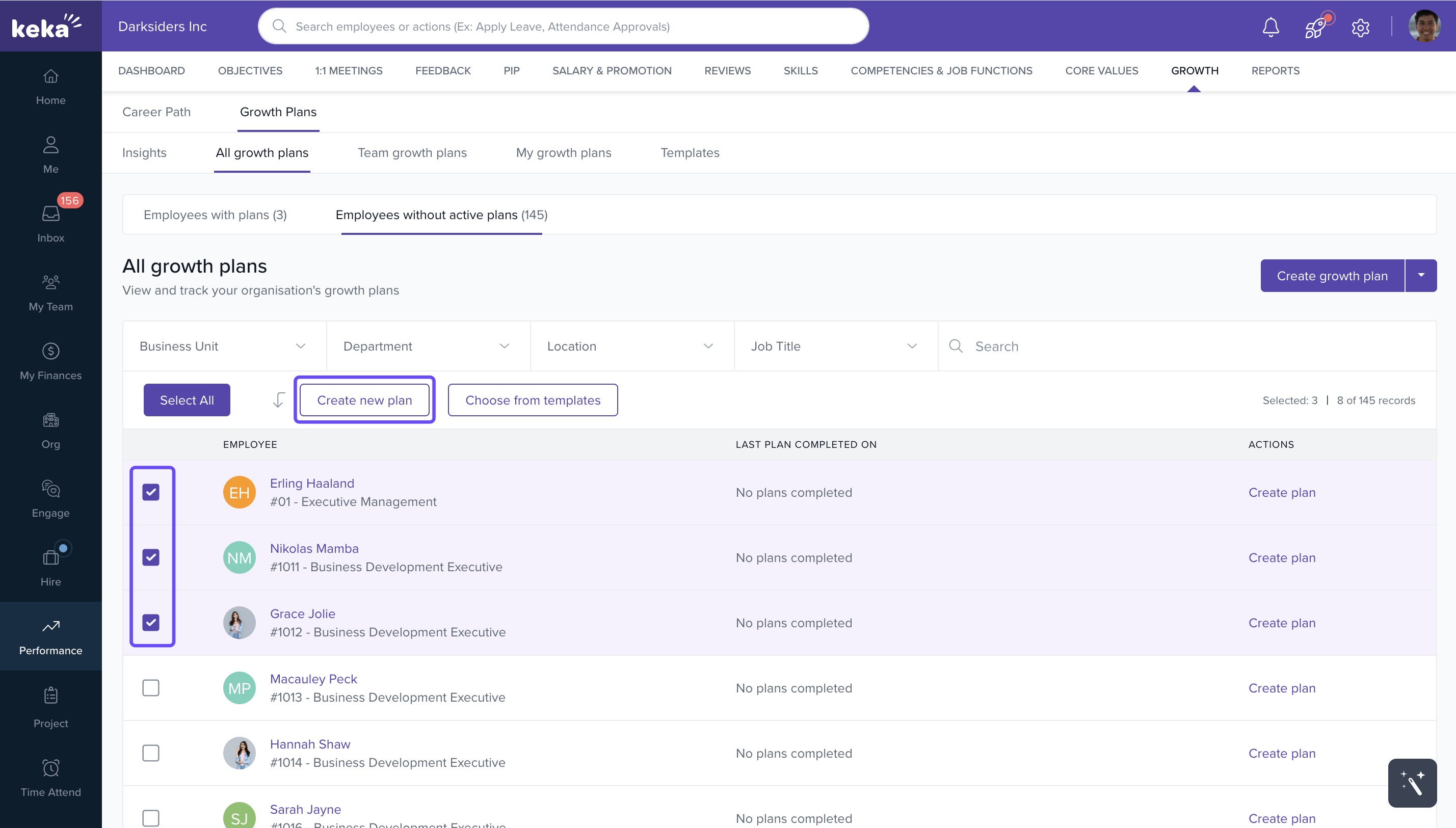 HR Admins, Managers, and Performance Admins with the necessary permissions under the Performance module can assign growth plans.