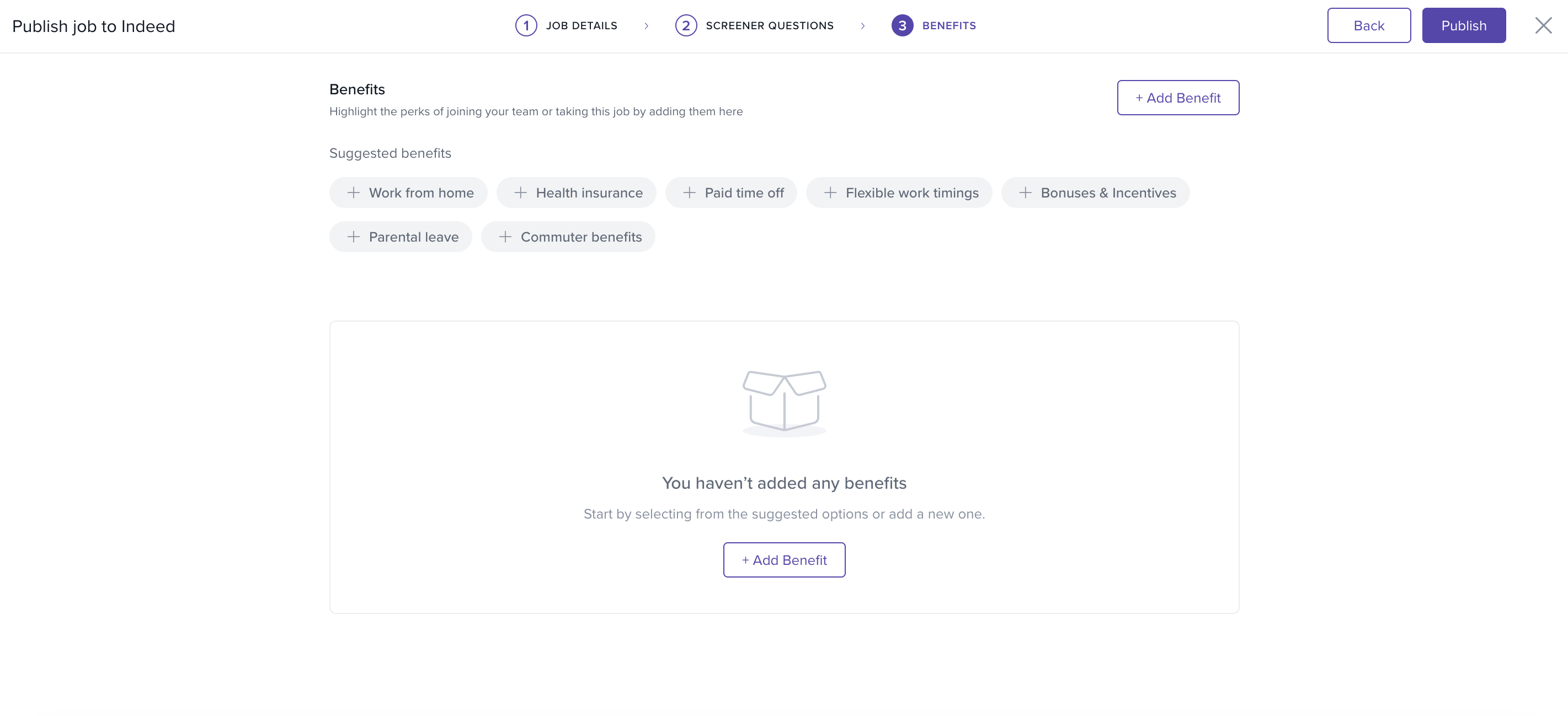 Once integrated, you can publish jobs to Indeed:
