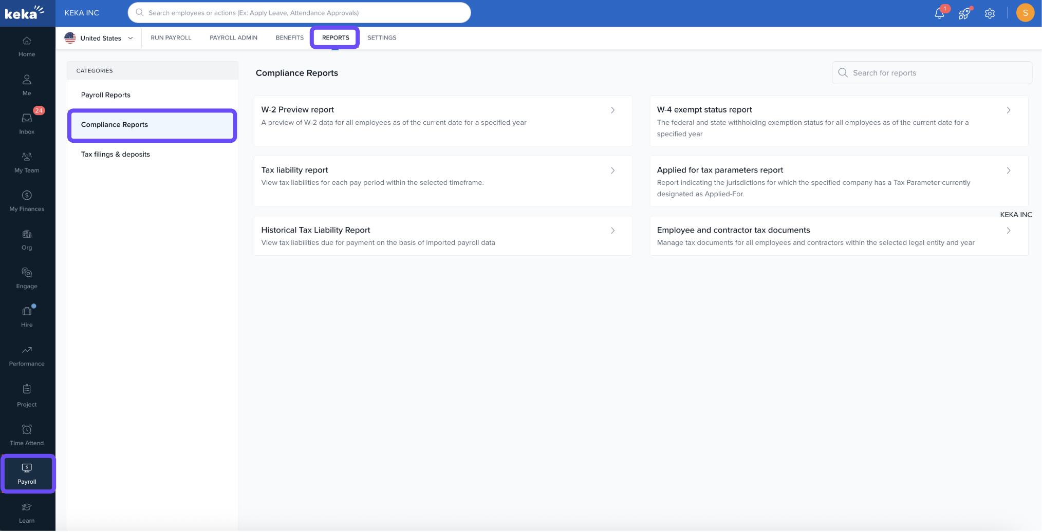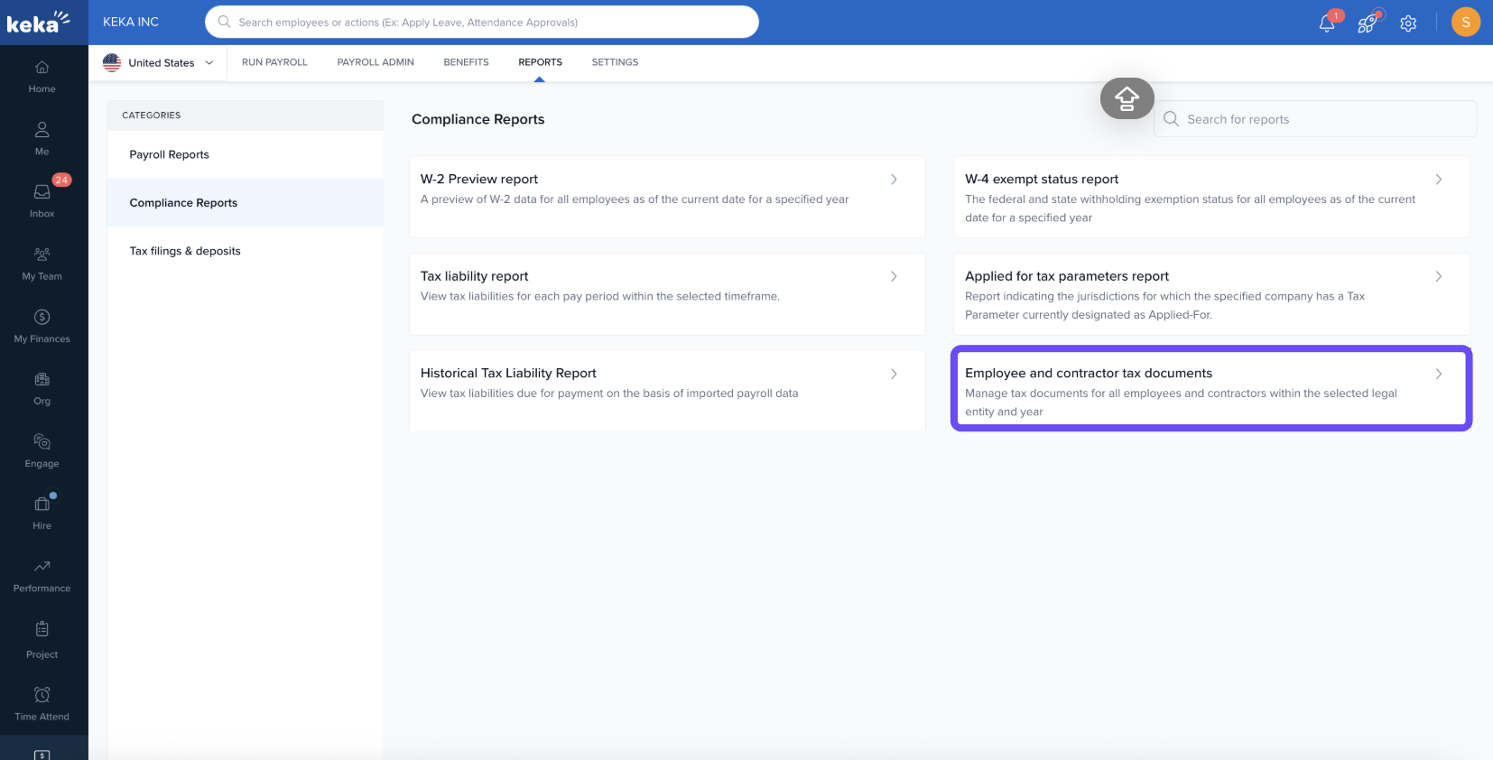- Select employee and contractor tax documents under compliance reports