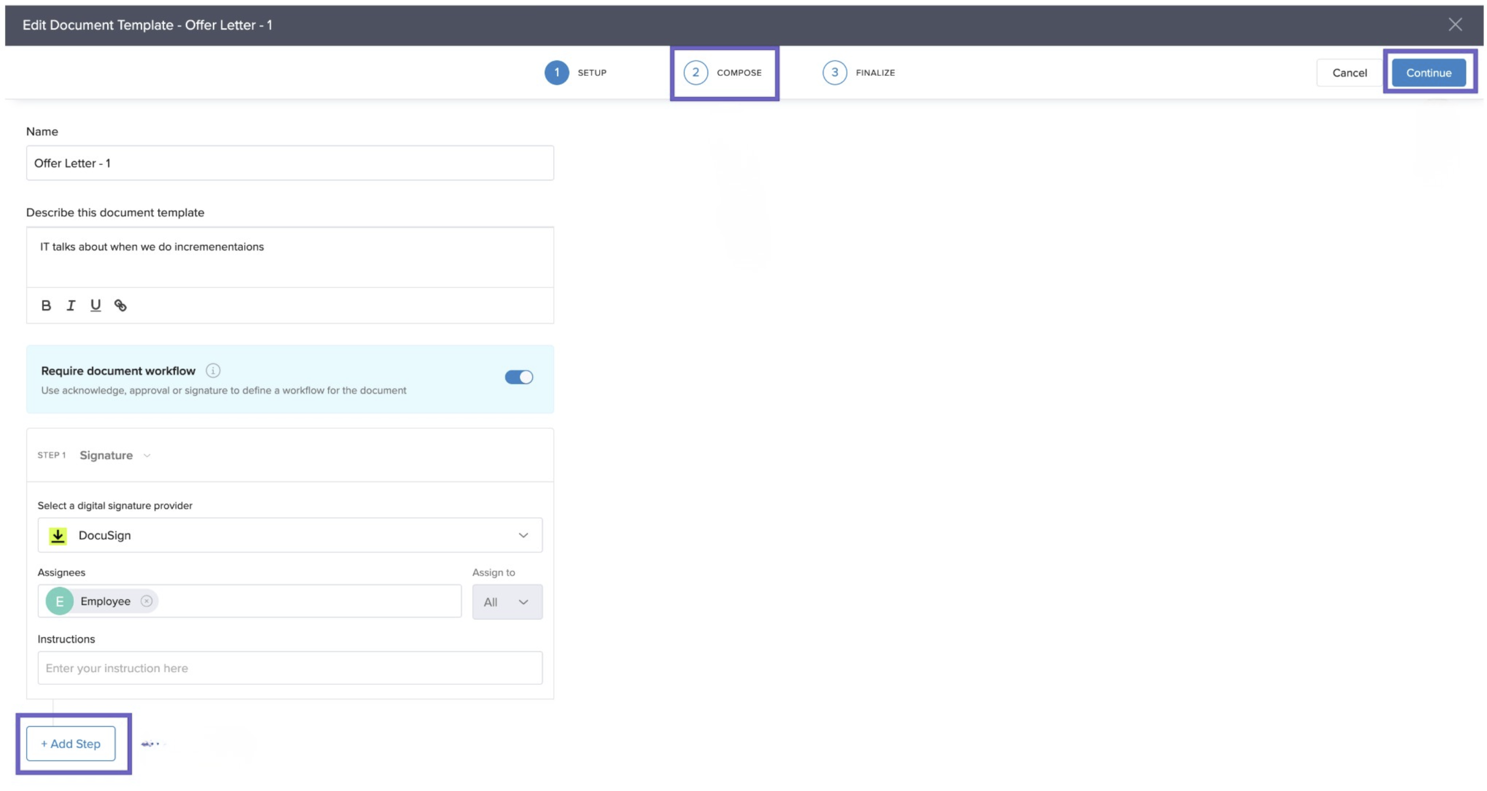 By setting up DocuSign in your document workflows, Keka allows organizations to automate digital signatures for offer letters, contracts, and other important documents. This reduces manual effort, improves security, and ensures compliance with legally valid digital signatures.