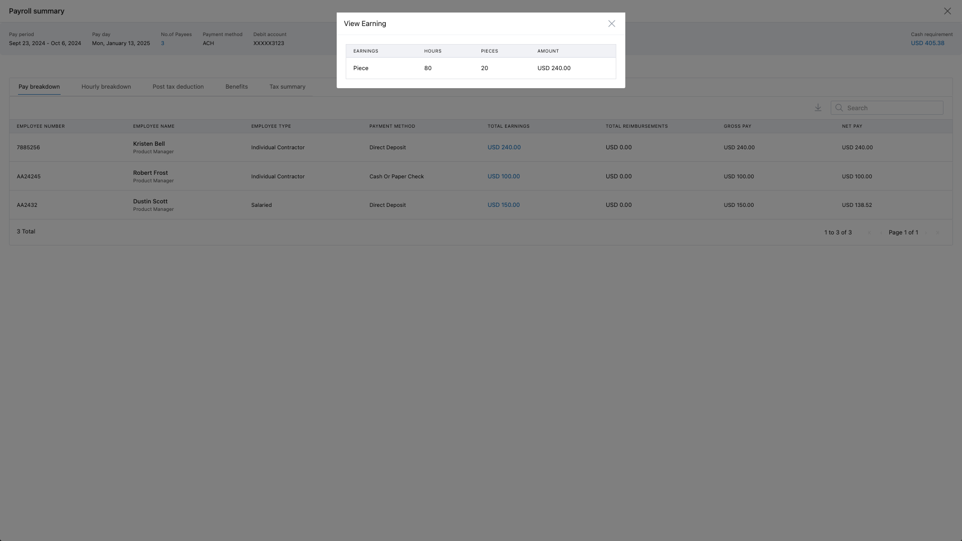 Employees can view the following details in their pay stubs: