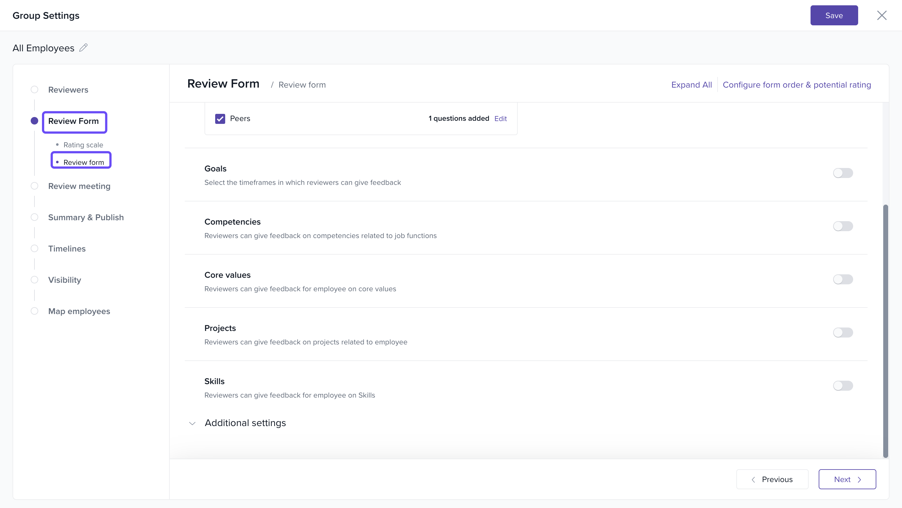 Important: Enable this setting before the review cycle is launched—once the cycle starts, you won’t be able to change it.