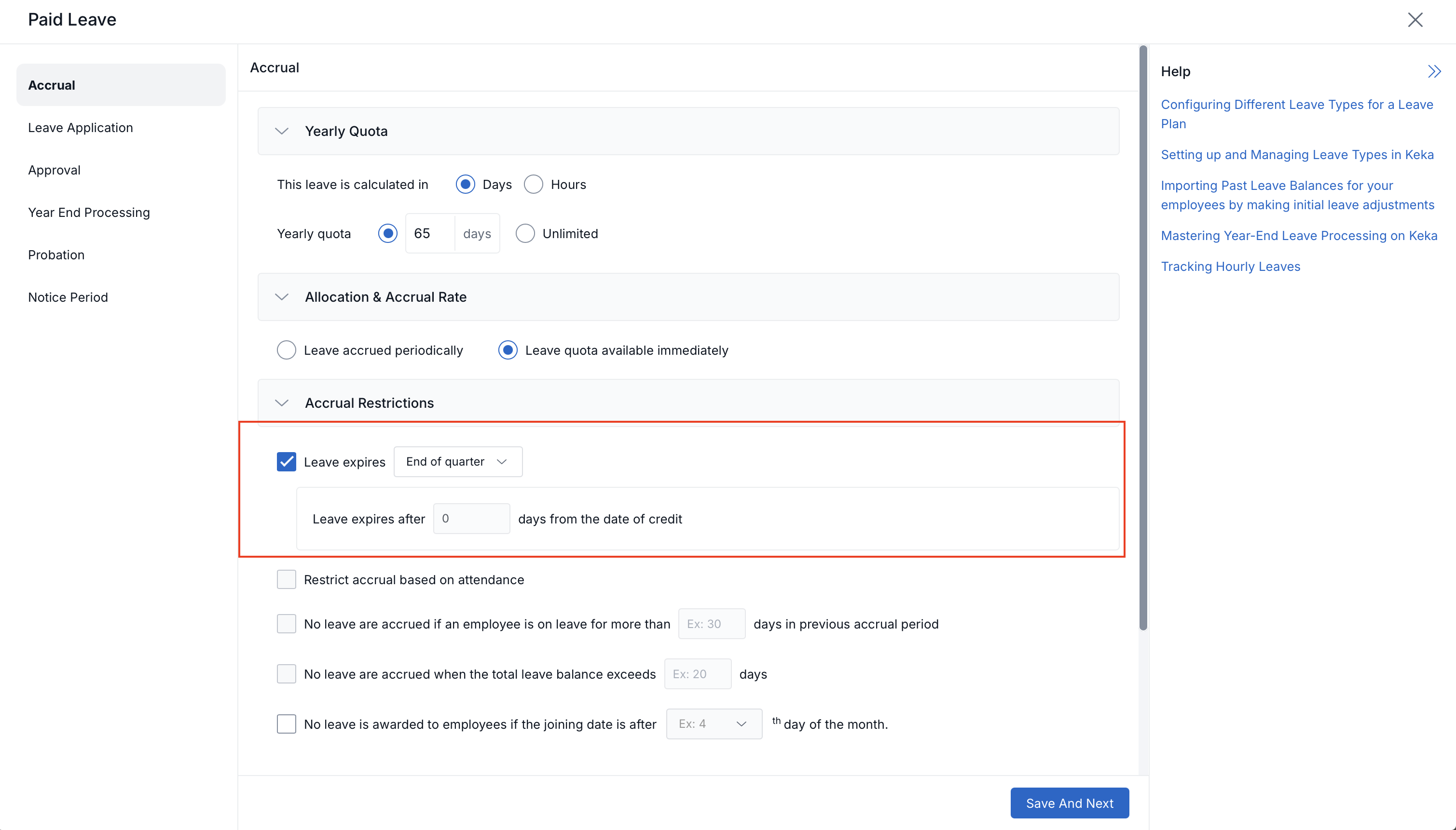 End of Quarter – Leave expires at the end of the calendar quarter