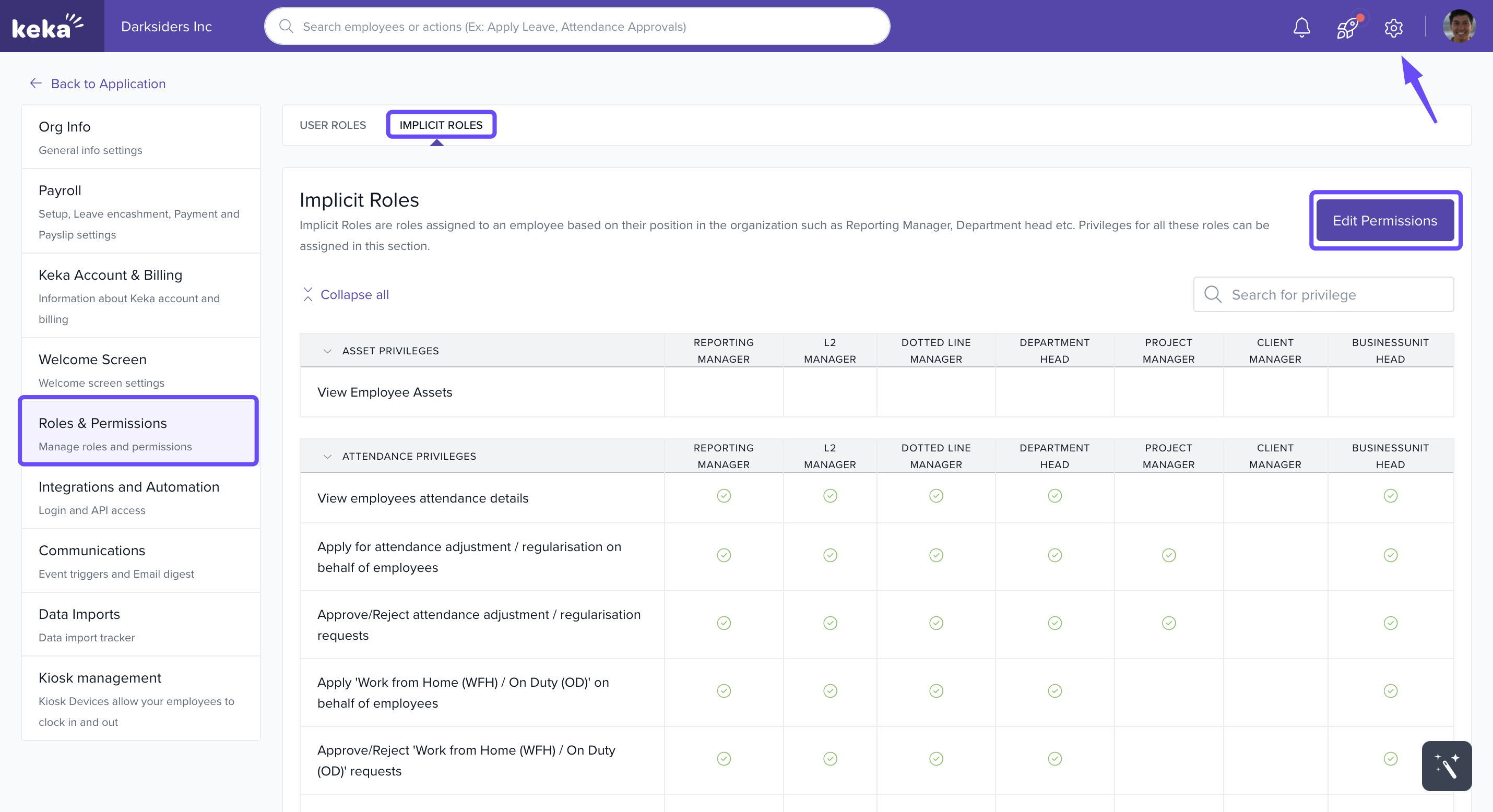 - Access the Roles & Permissions section and select the option to Edit Permissions.