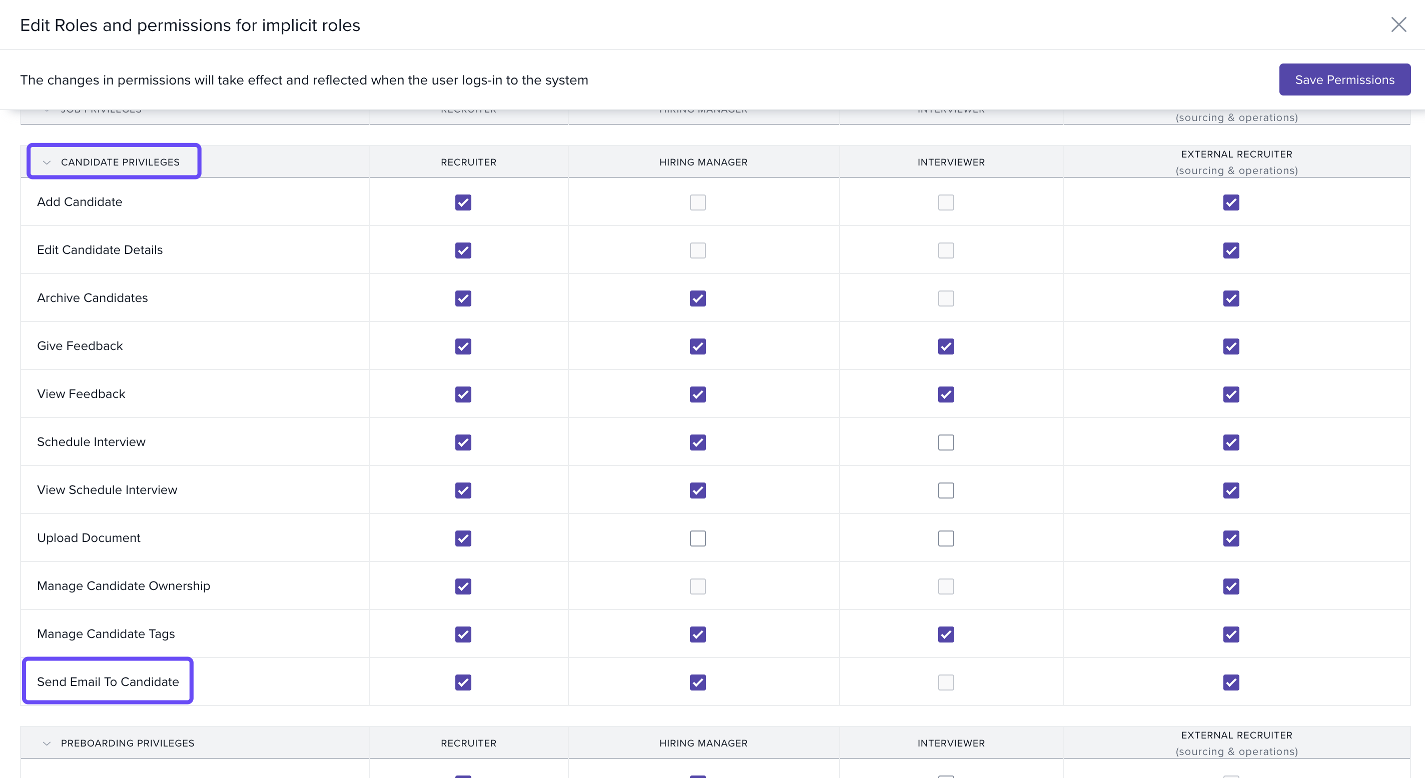 Keka Hire now includes permission control for the 'Send Email' action. Admins can decide who within the recruitment team is allowed to send emails directly from the platform to candidates or external stakeholders. By default, Hiring Managers and Recruiters can send emails through Keka Hire. However, some organizations may prefer to restrict email access to specific users for security, brand consistency, or compliance reasons. This gives admins the ability to control email communication privileges with ease.