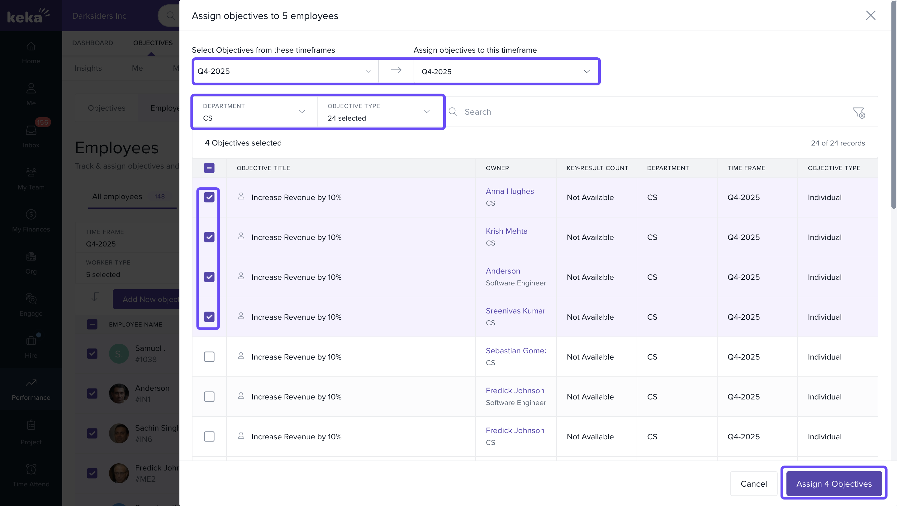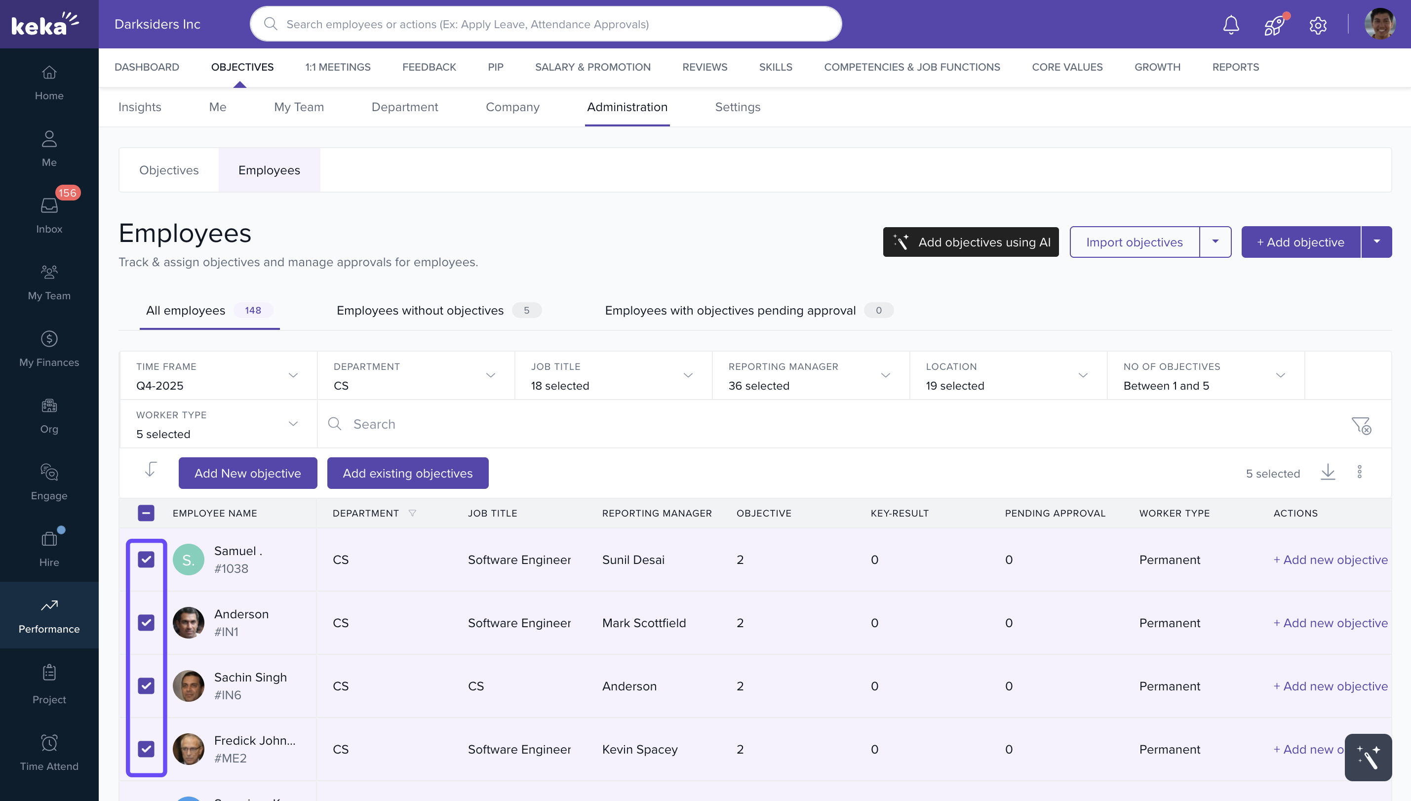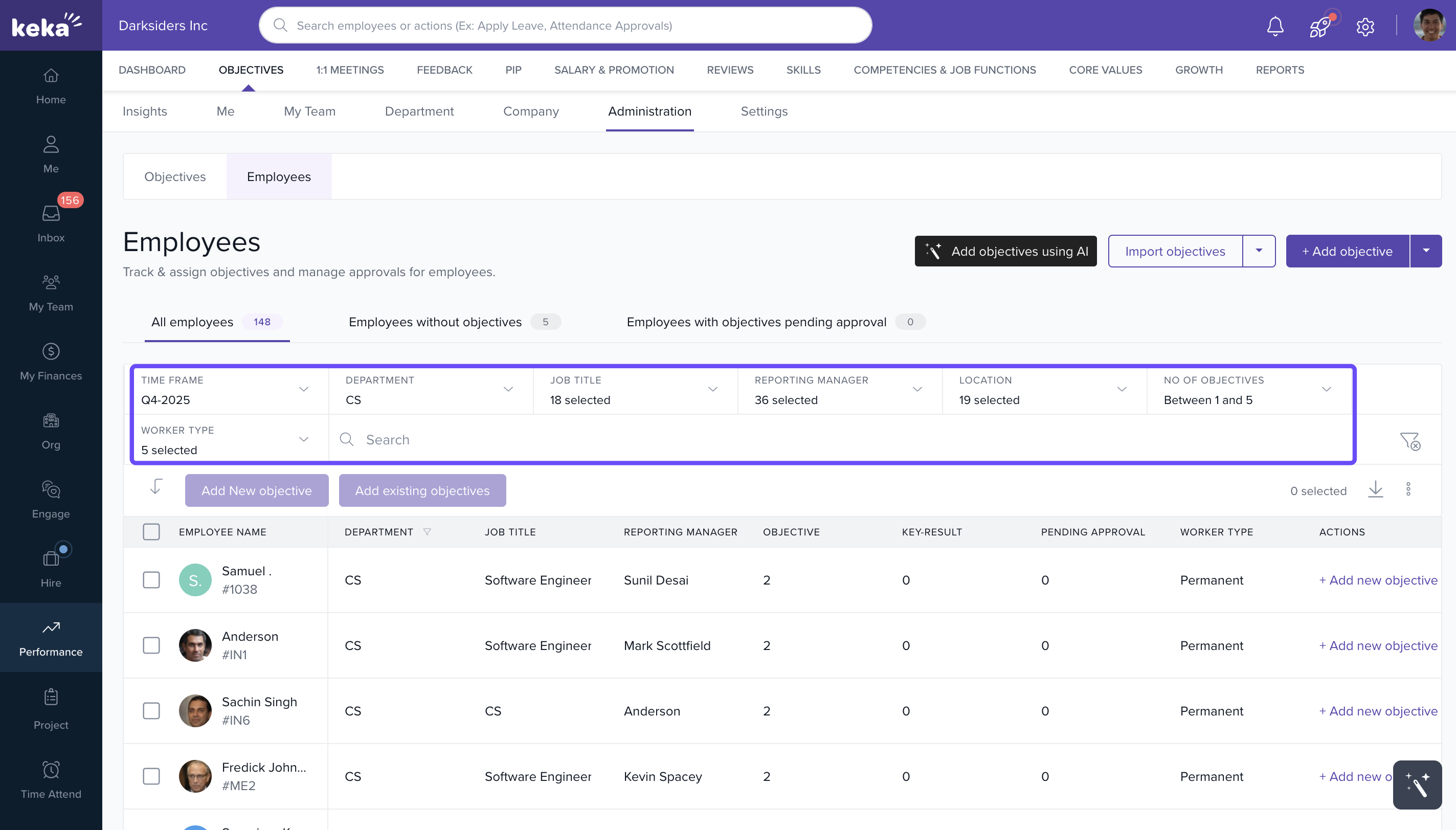 - Under the Employees tab, you will see a list of employees along with their respective objectives, key results, and other details.