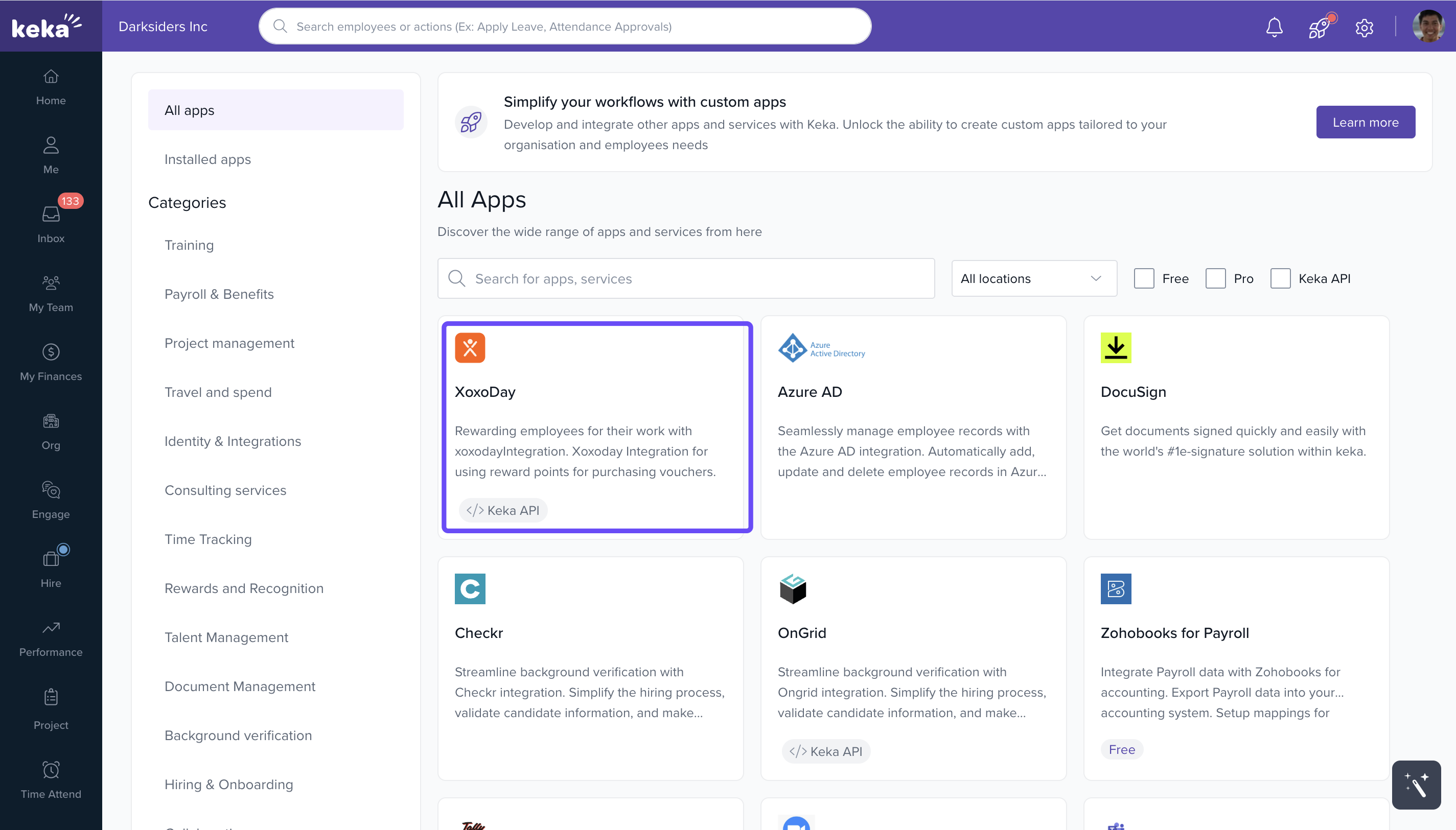 Xoxoday is a rewards platform that enables your employees to redeem points earned in Keka. It offers a wide selection of reward options—like gift cards, experiences, and merchandise—making your recognition program more impactful and complete.