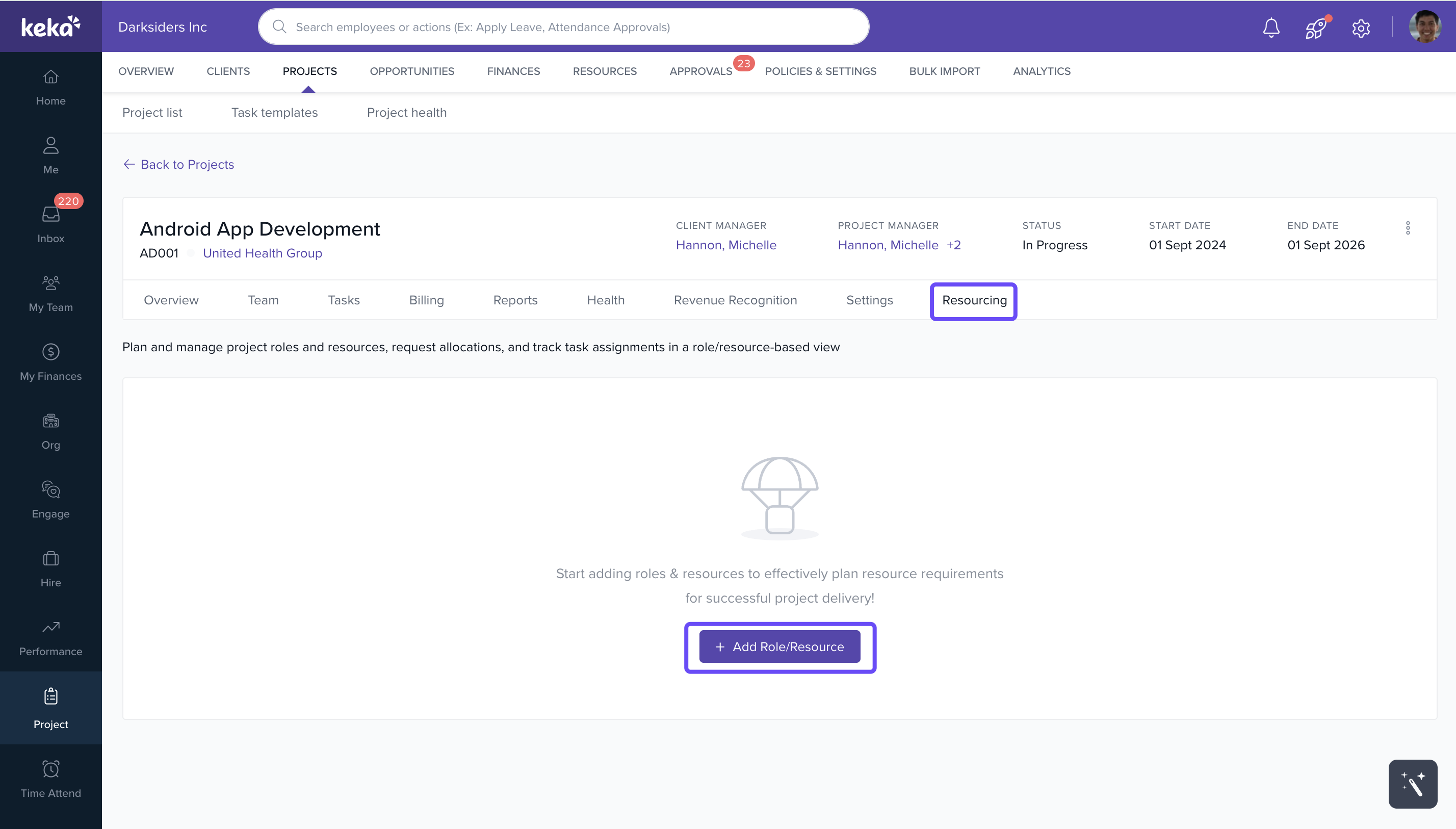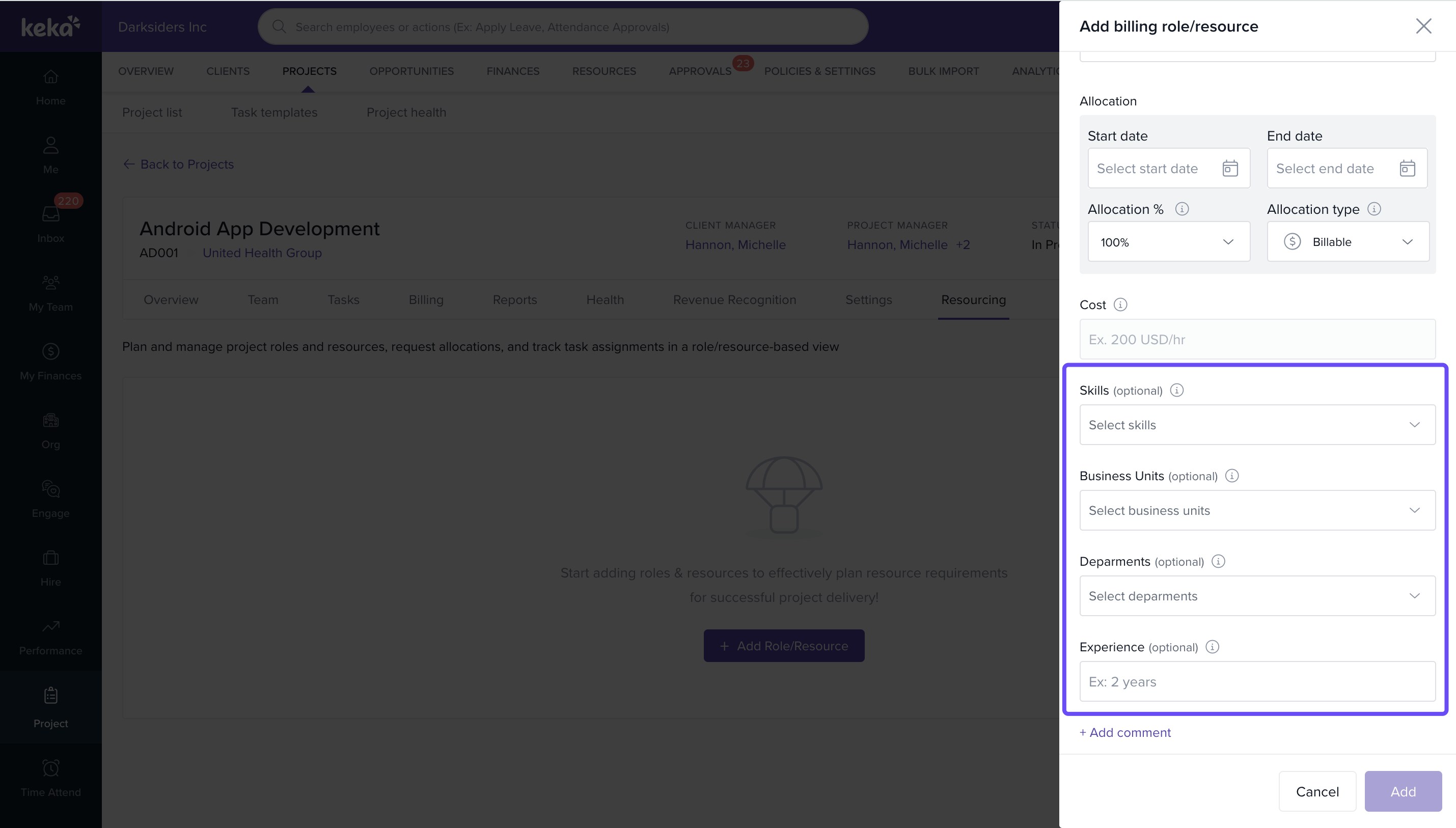 - Project Managers, Global Admins, or custom roles with access to resource requests in Keka PSA.