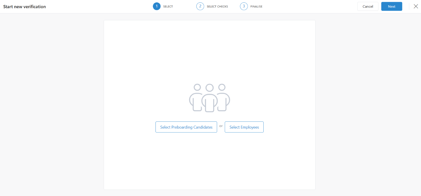 Choose whether to “Select Pre-Onboarding Candidates” or “Select Employees.”