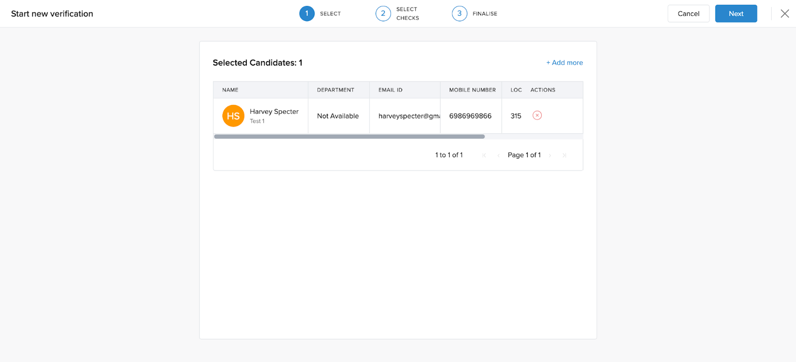 Alternatively, click the three-dot icon next to the candidate and select Start New BGV.