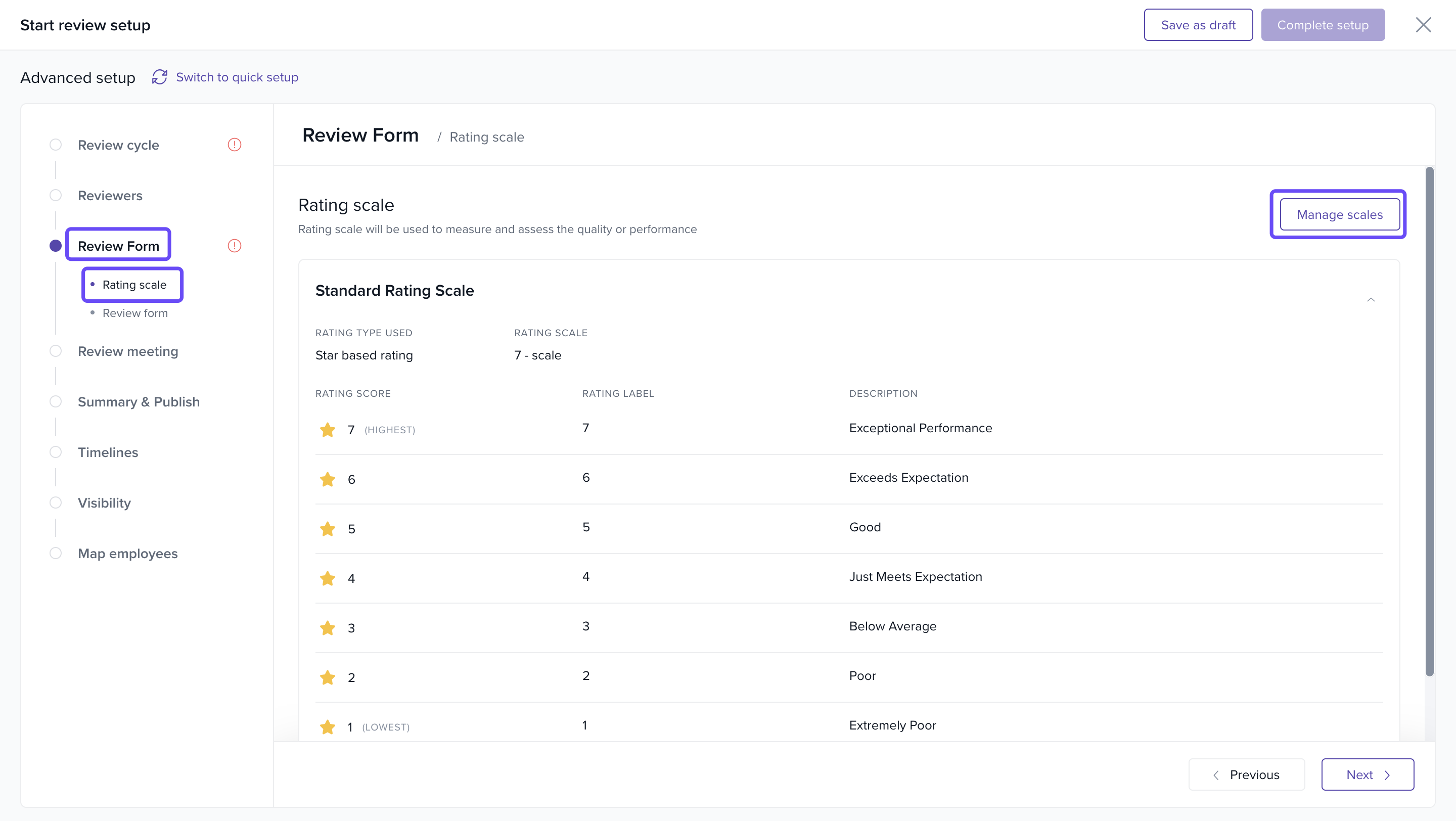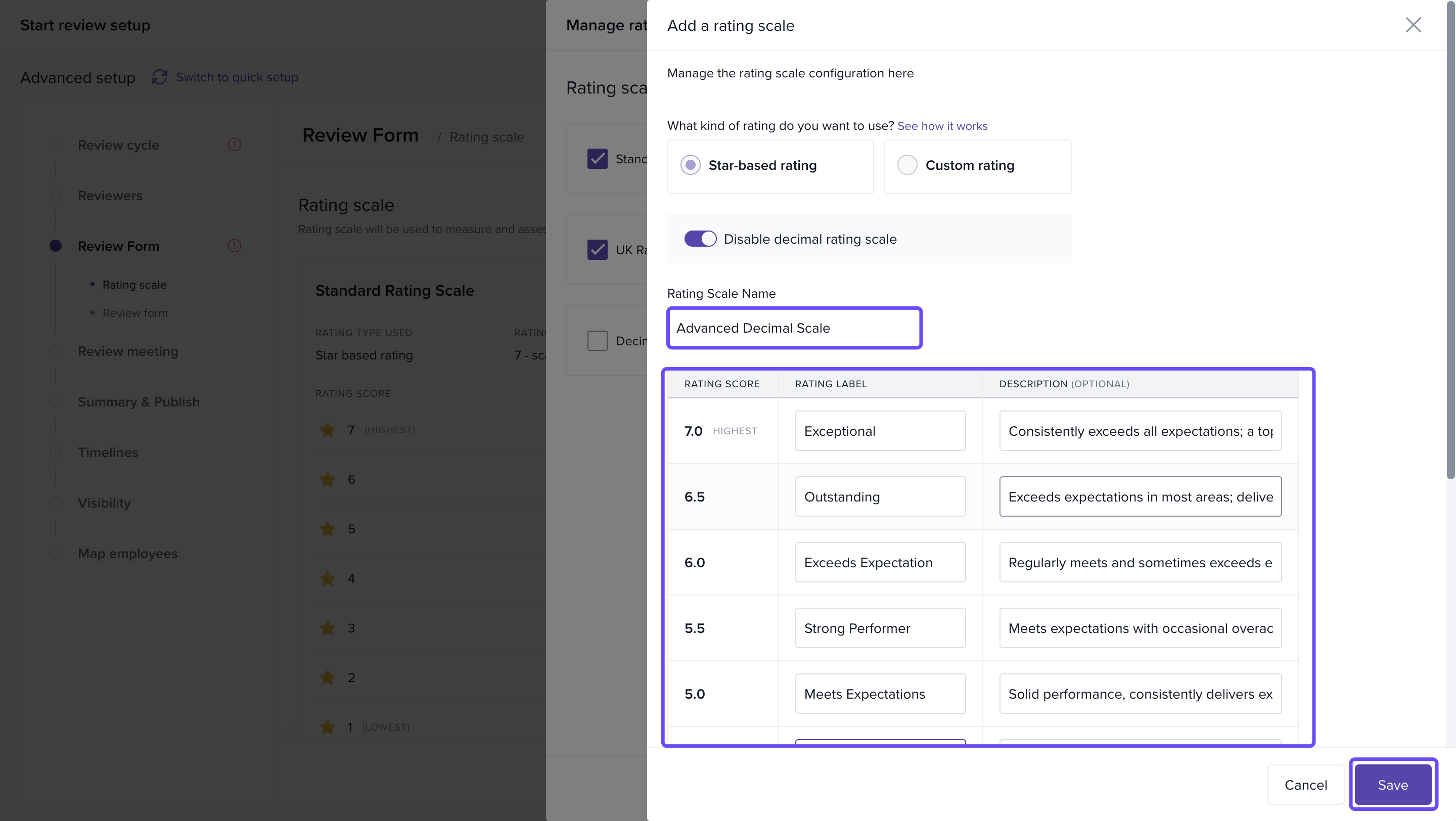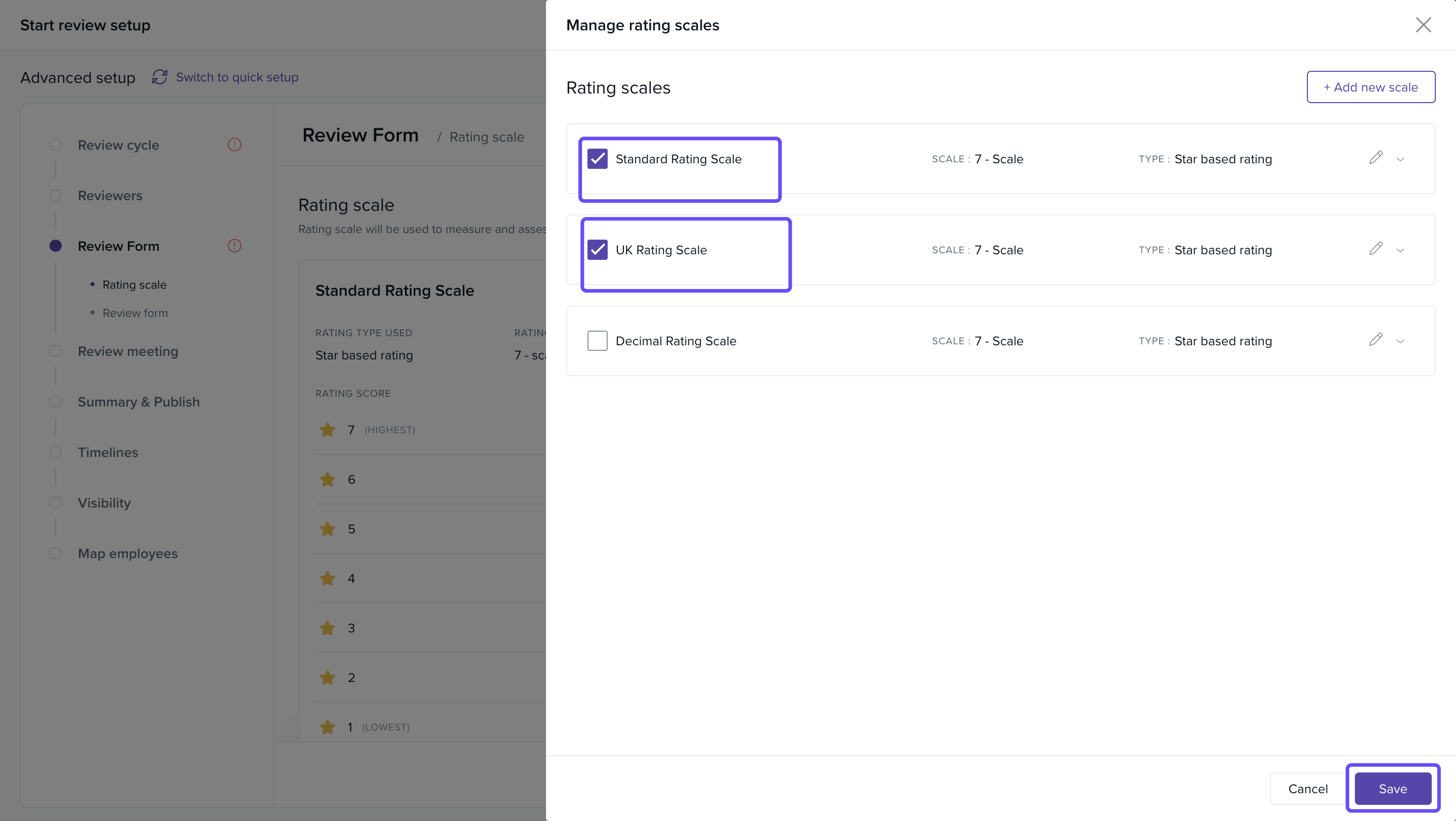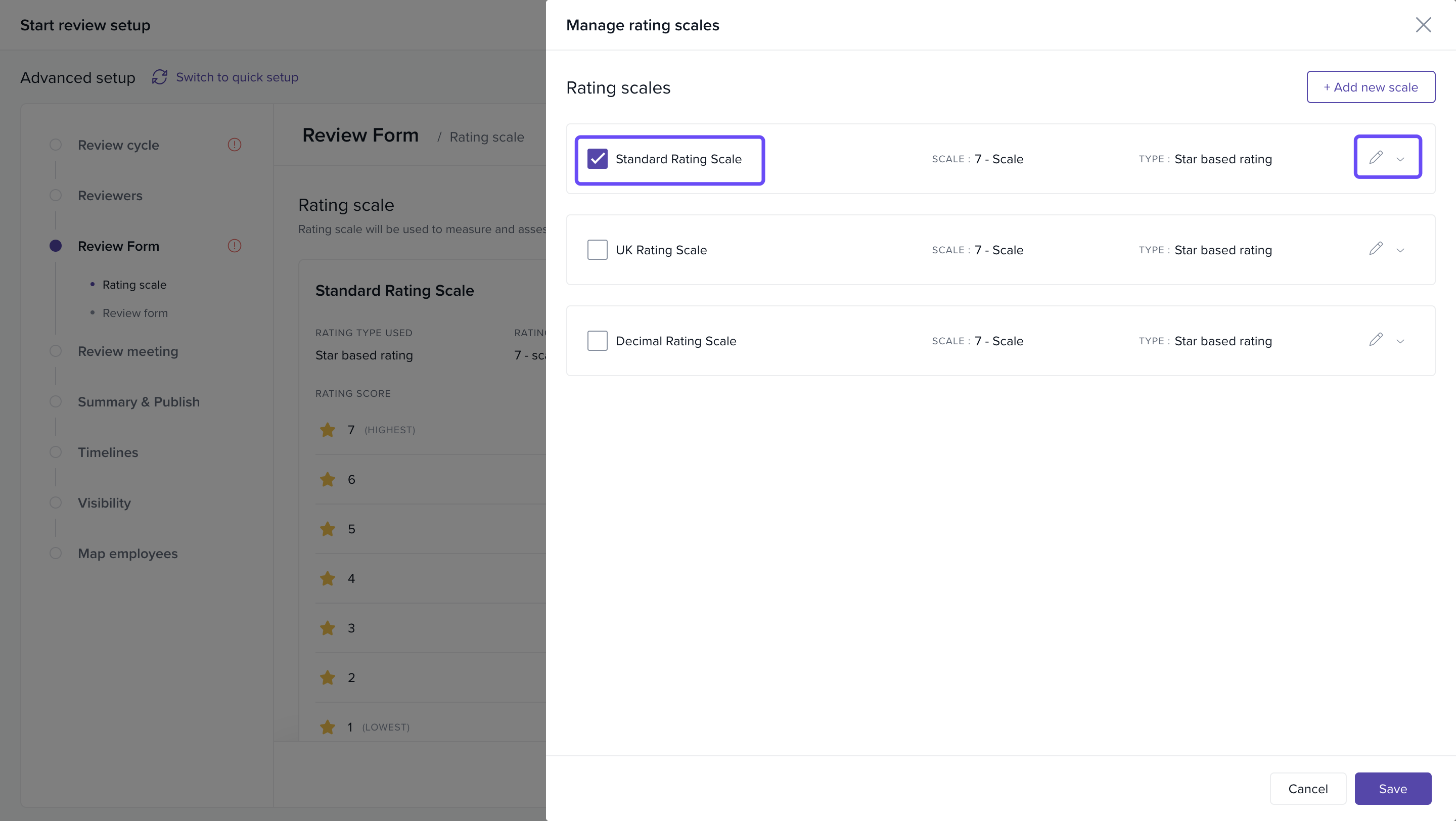 Whether you’re setting up a new review cycle or updating an existing one, this guide walks you through the steps to configure rating scales effectively.