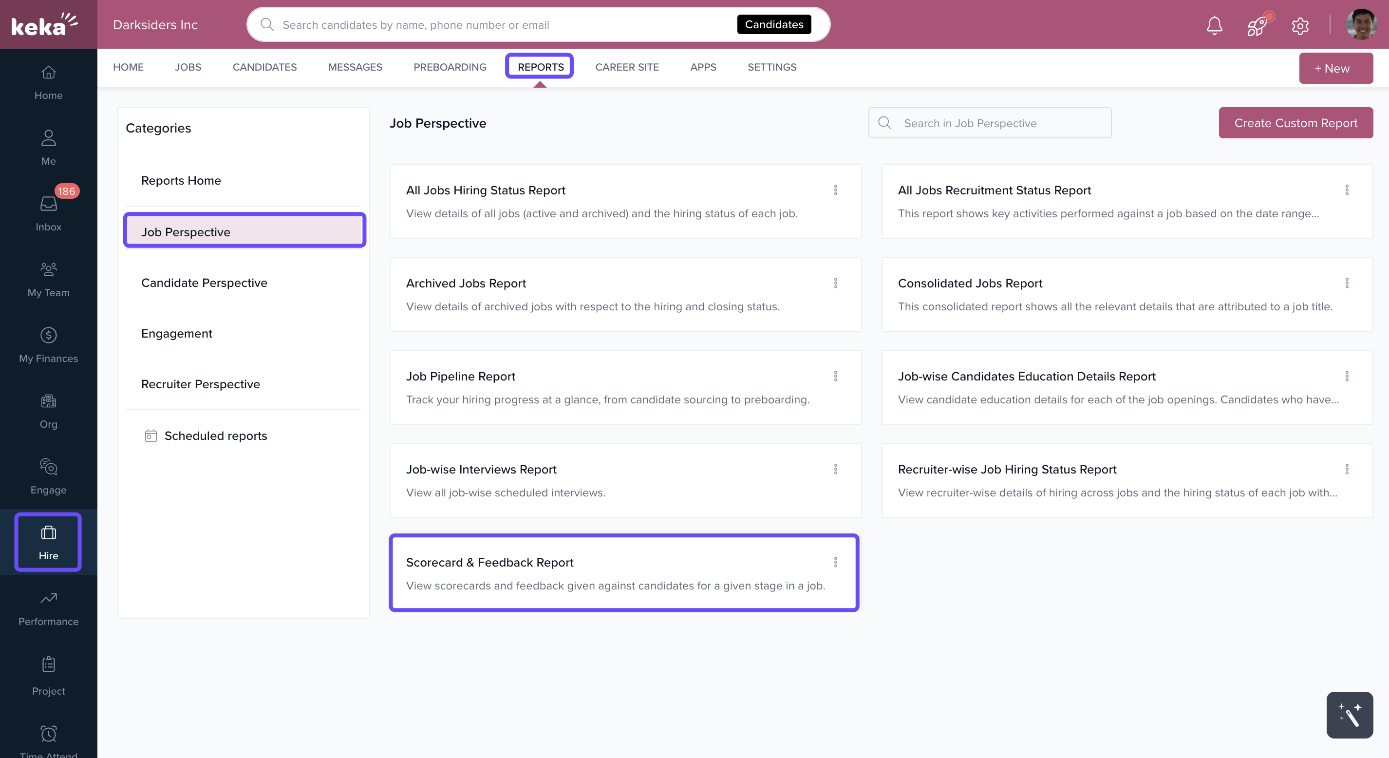 - Under the Jobs perspective, select Scorecard and feedback report.