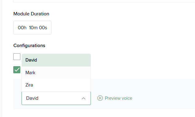 - Choose the preferred voice from the available options.