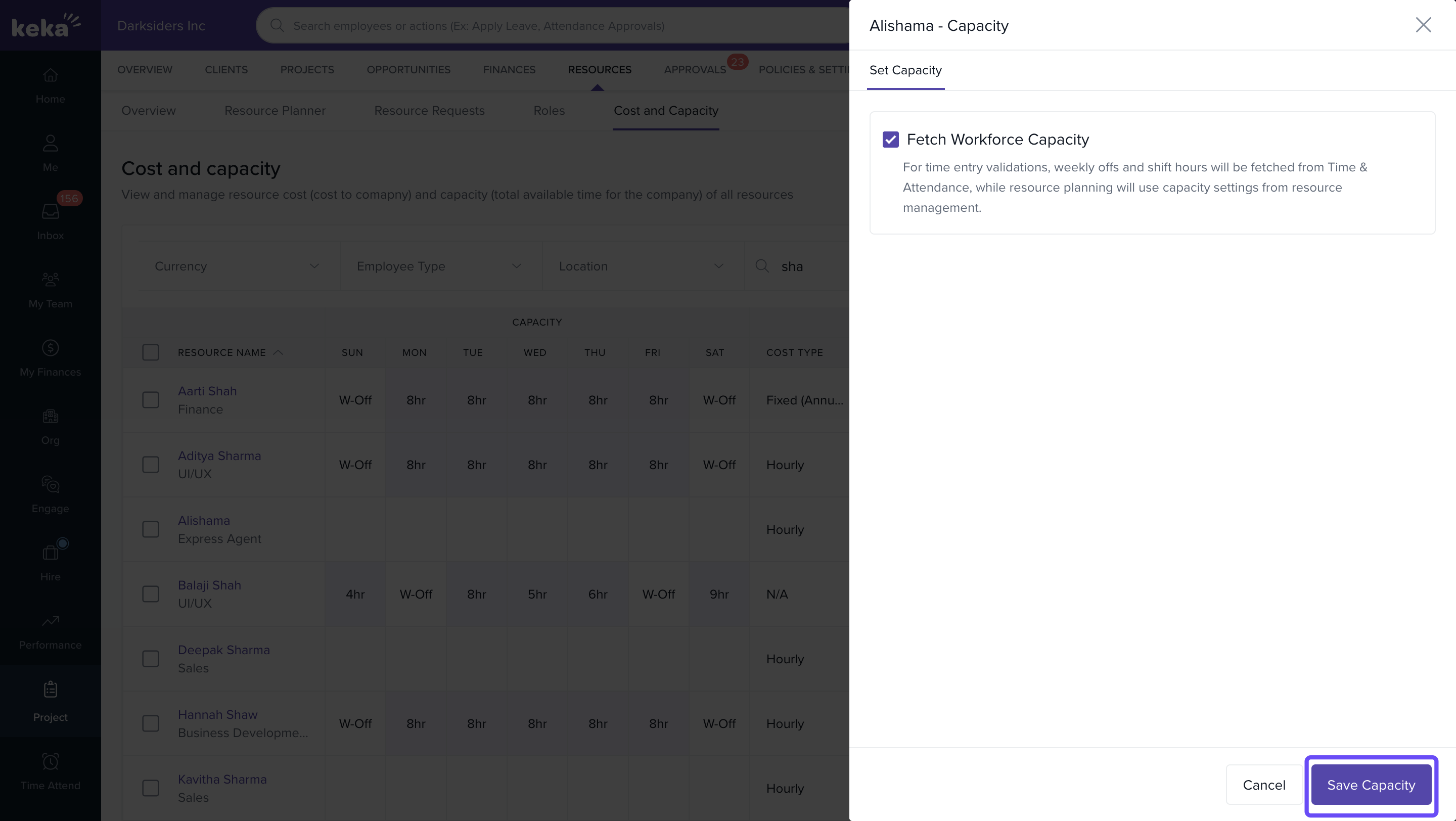 - Check the box labeled "Fetch Workforce Capacity" to automatically retrieve weekly off days and shift hours from the Time & Attendance system.