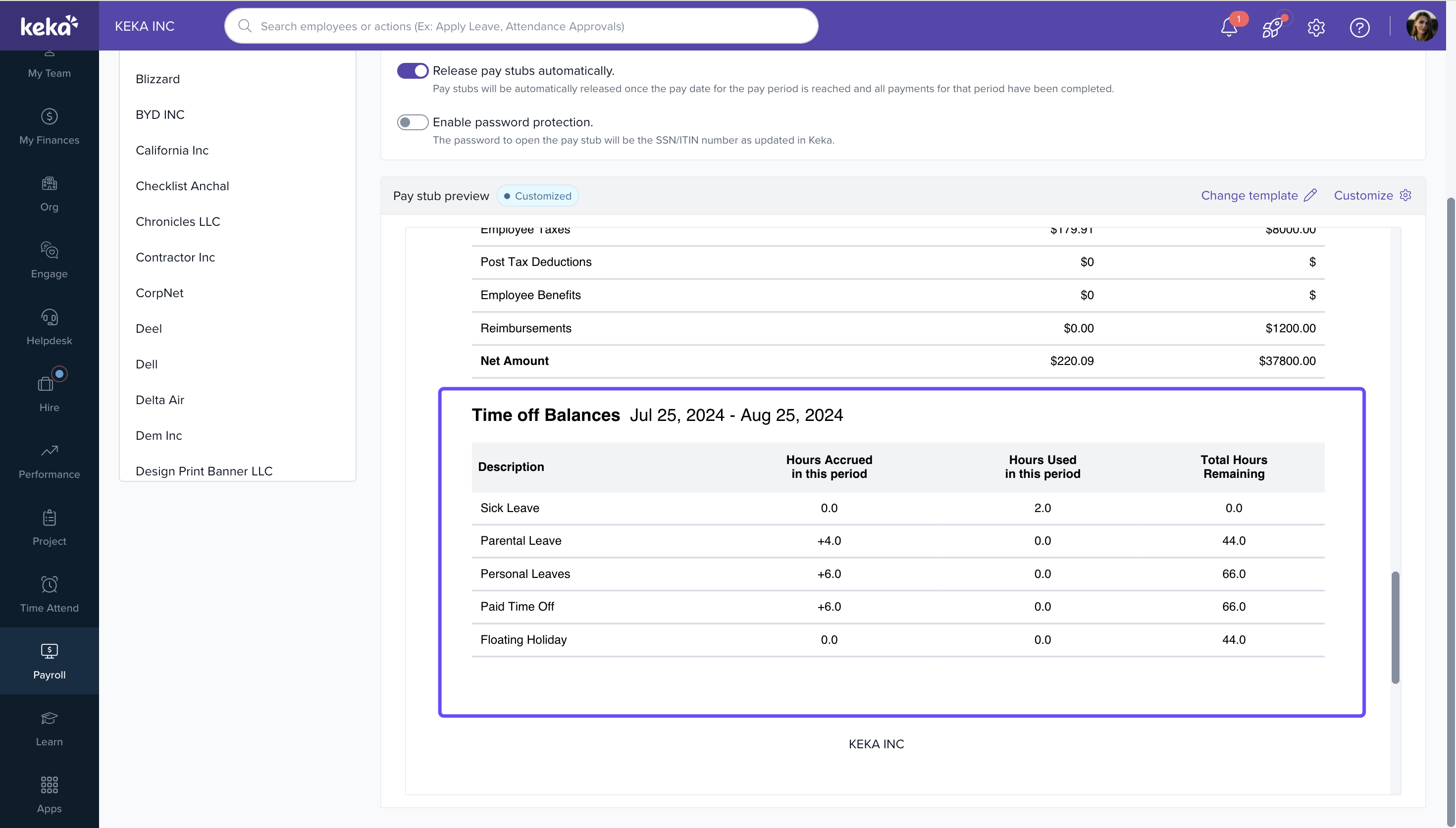 Keka now allows you to display employee leave balances directly in pay stubs for US payroll.These updates help: