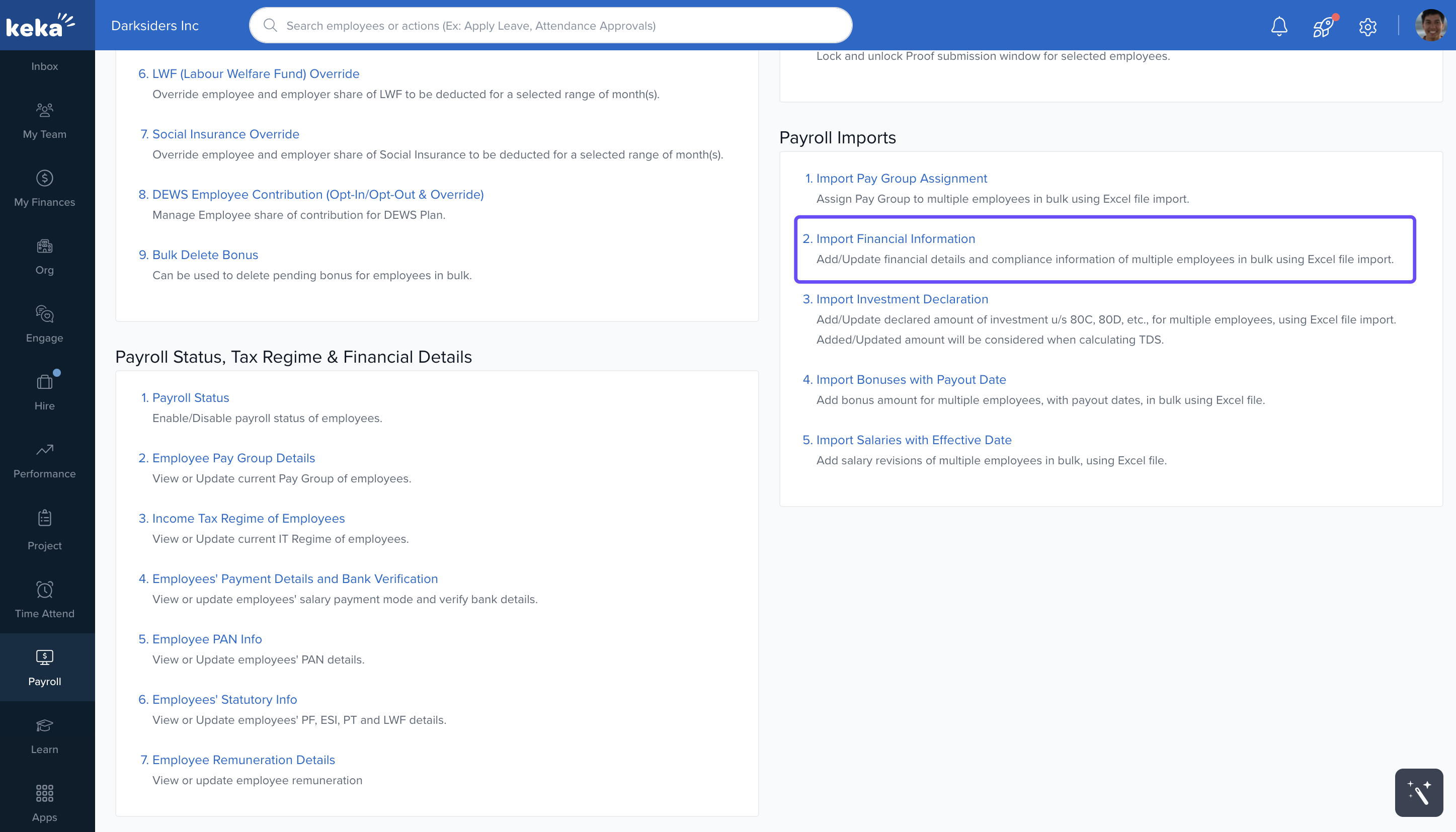 Back in Keka, click Upload Excel File