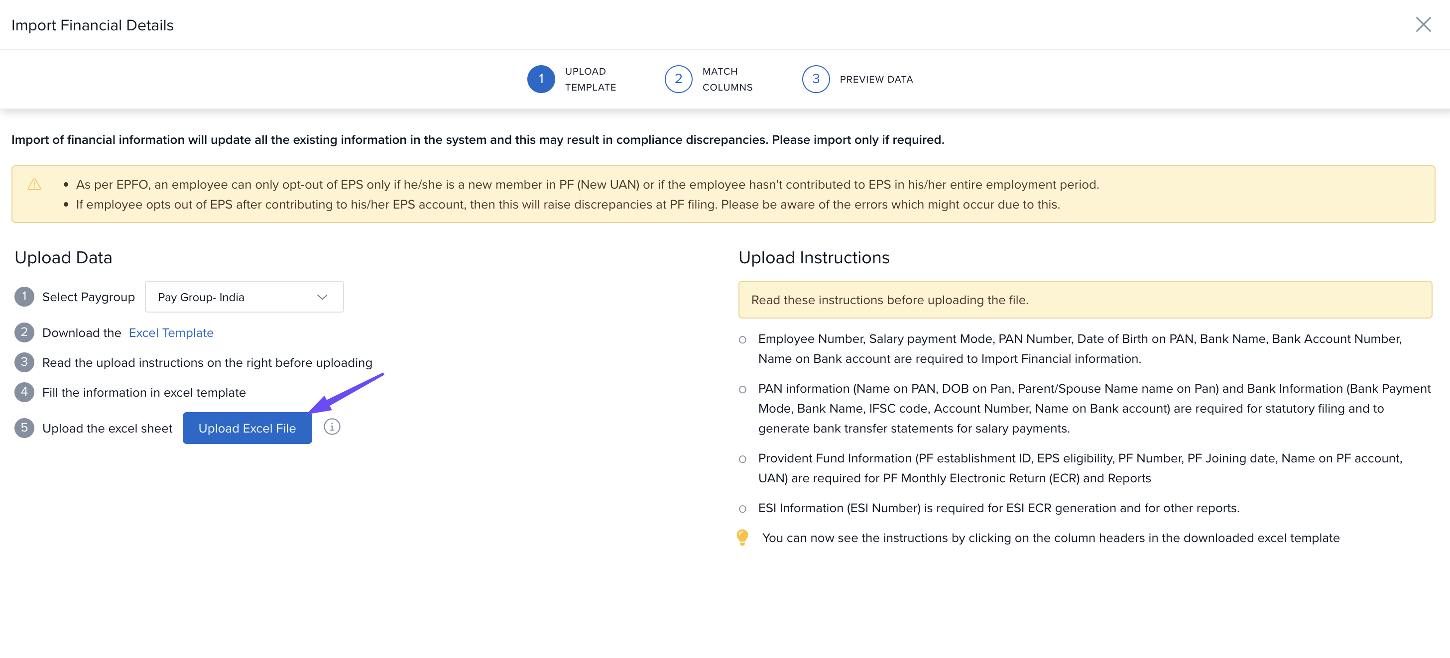 Click Download Excel Template
