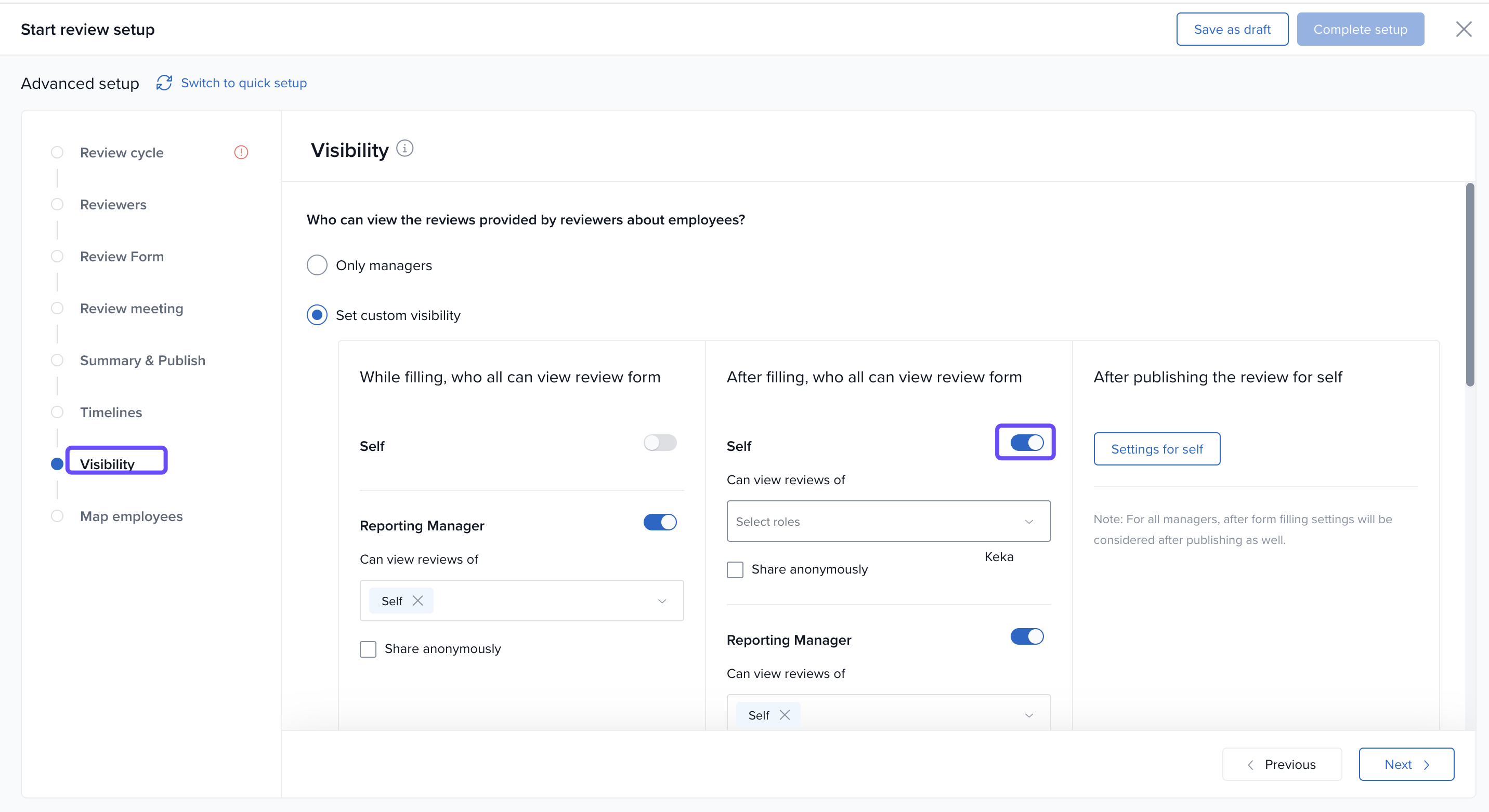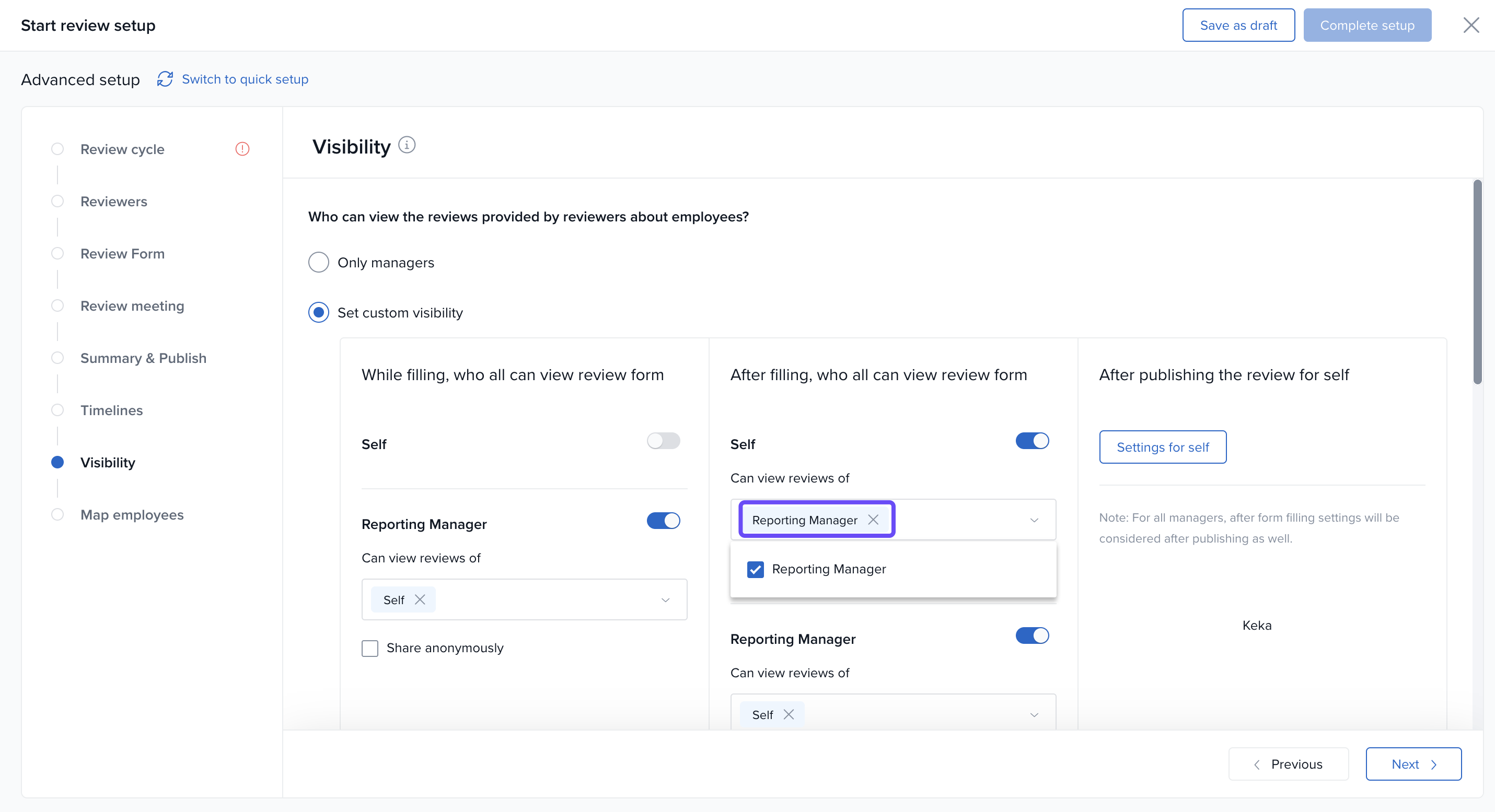 Previously, employees could only view their feedback after the review cycle was published. Now, there are two visibility options for review forms: