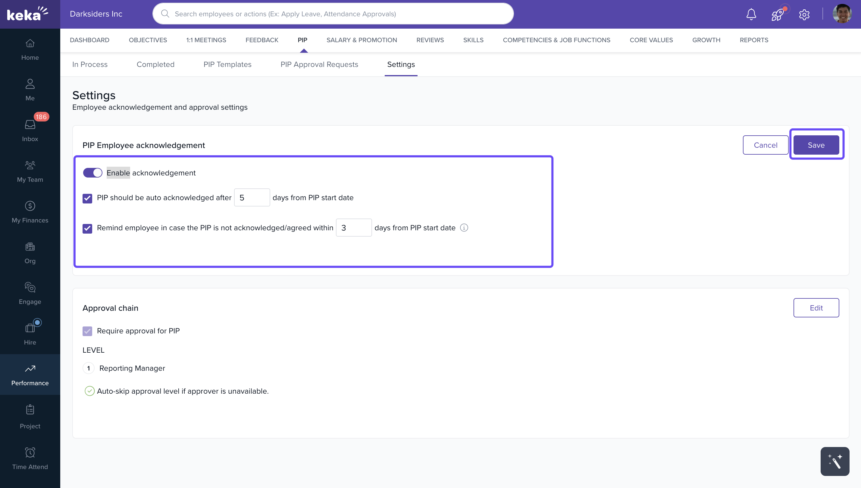 Need help configuring PIP workflows or follow-up reminders? Explore how to setup and manage approval chain for PIP in Keka or fill out this form for further assistance.