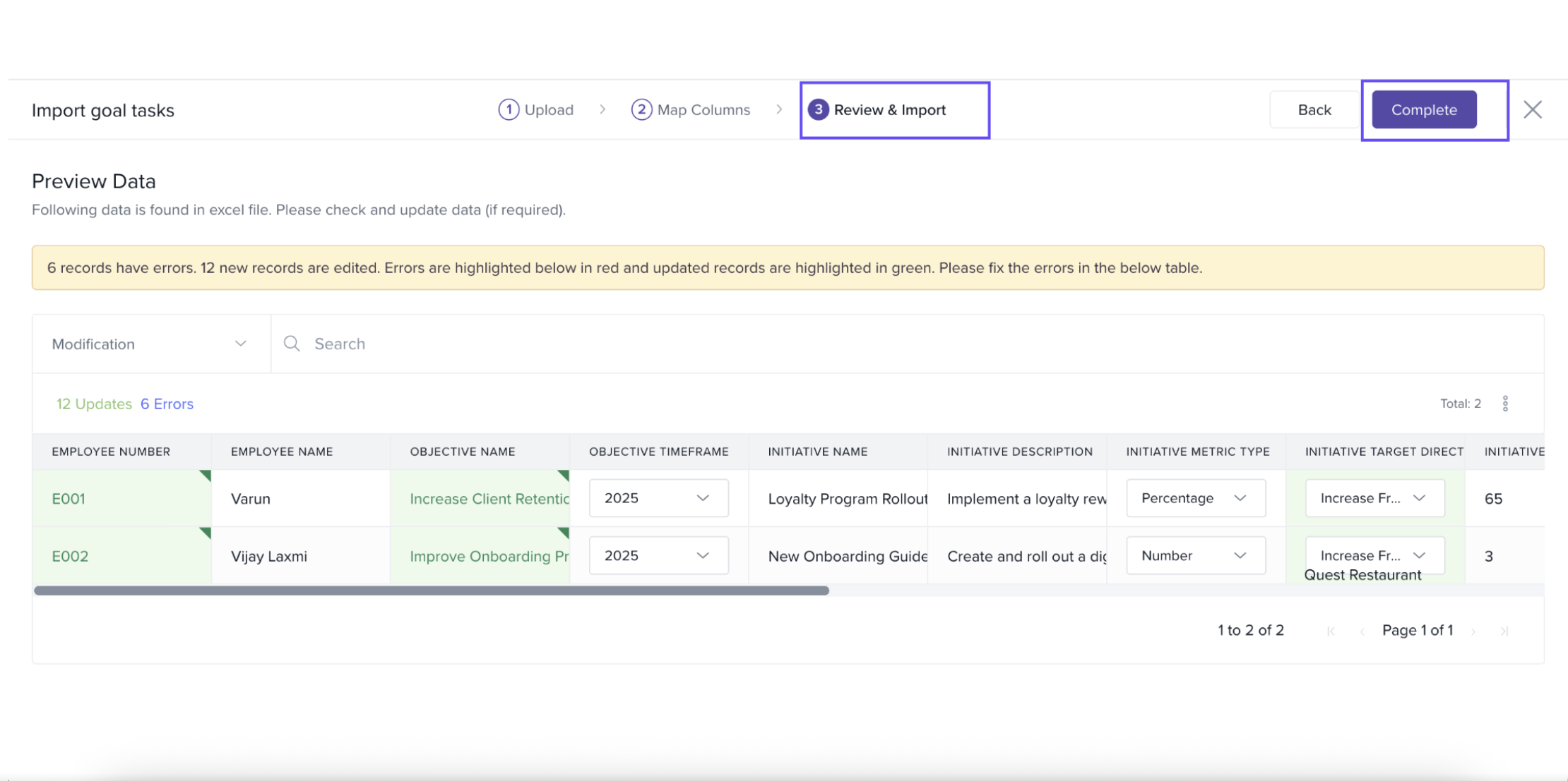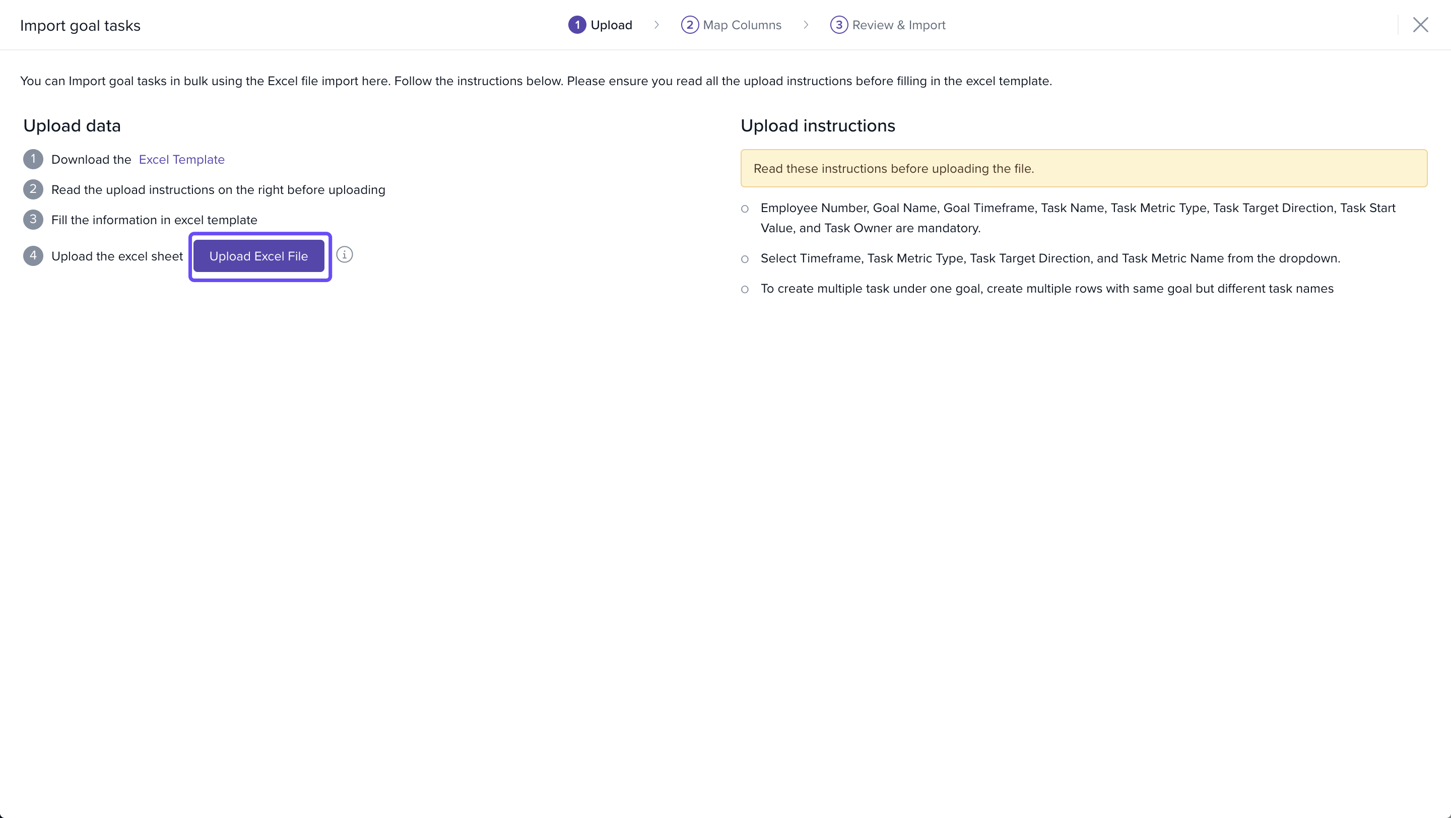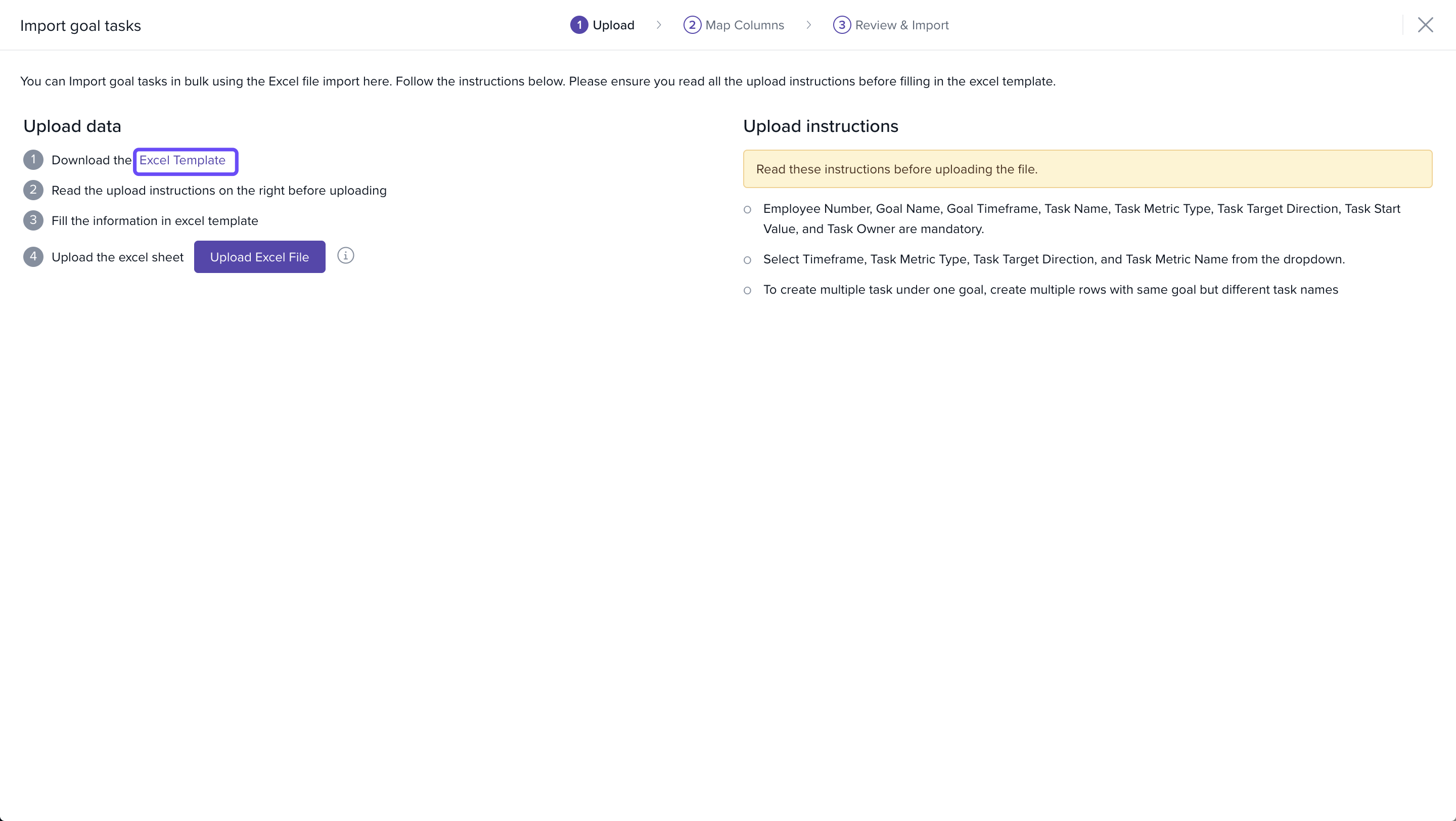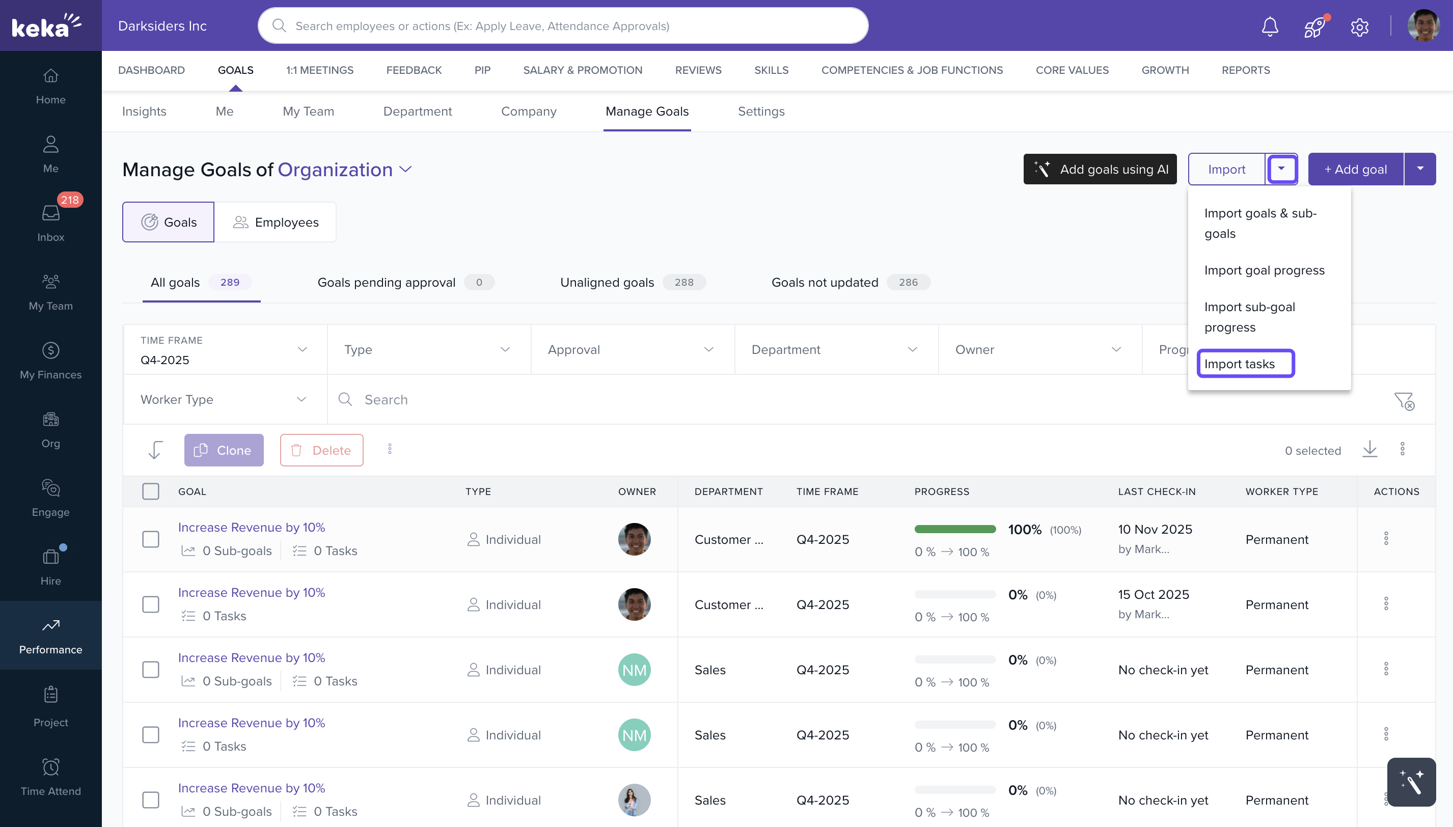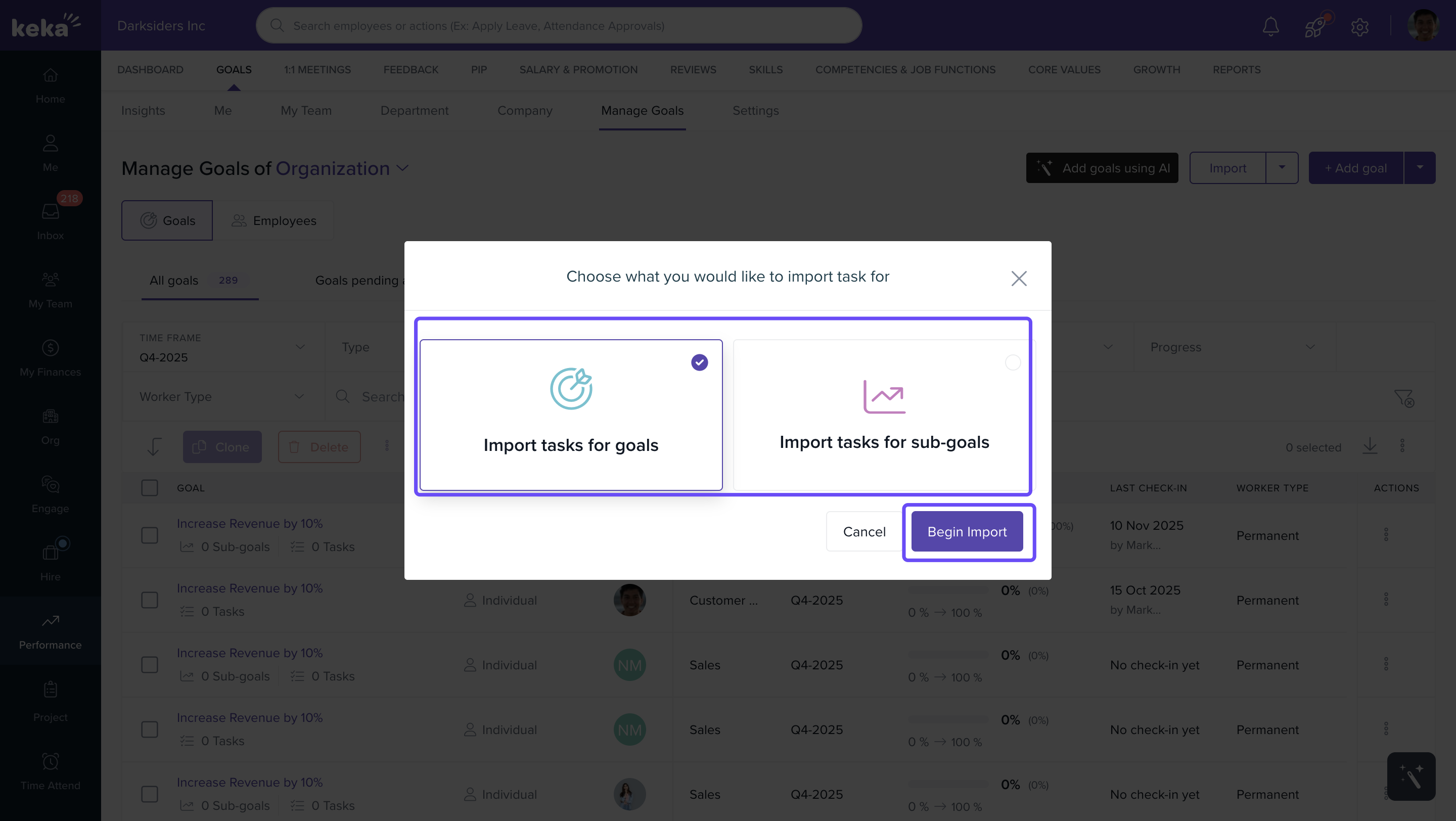 Steps to import Tasks for Goals and Sub-goals in Keka